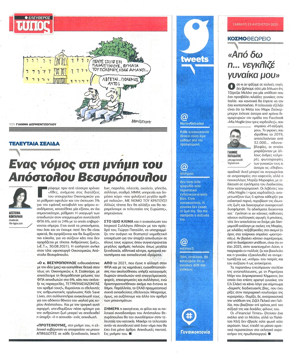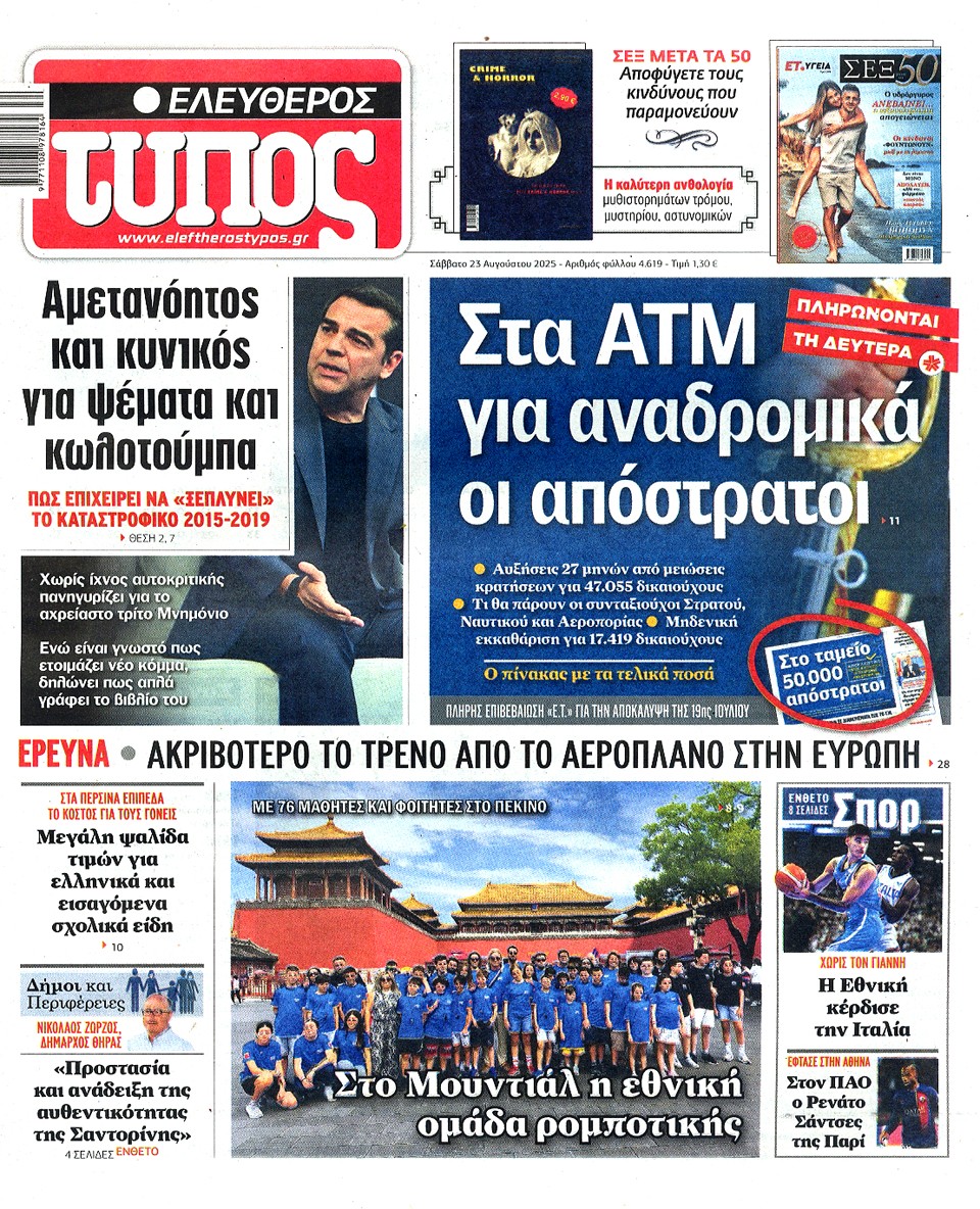 ΕΛΕΥΘΕΡΟΣ ΤΥΠΟΣ - 23 Αυγούστου 2025