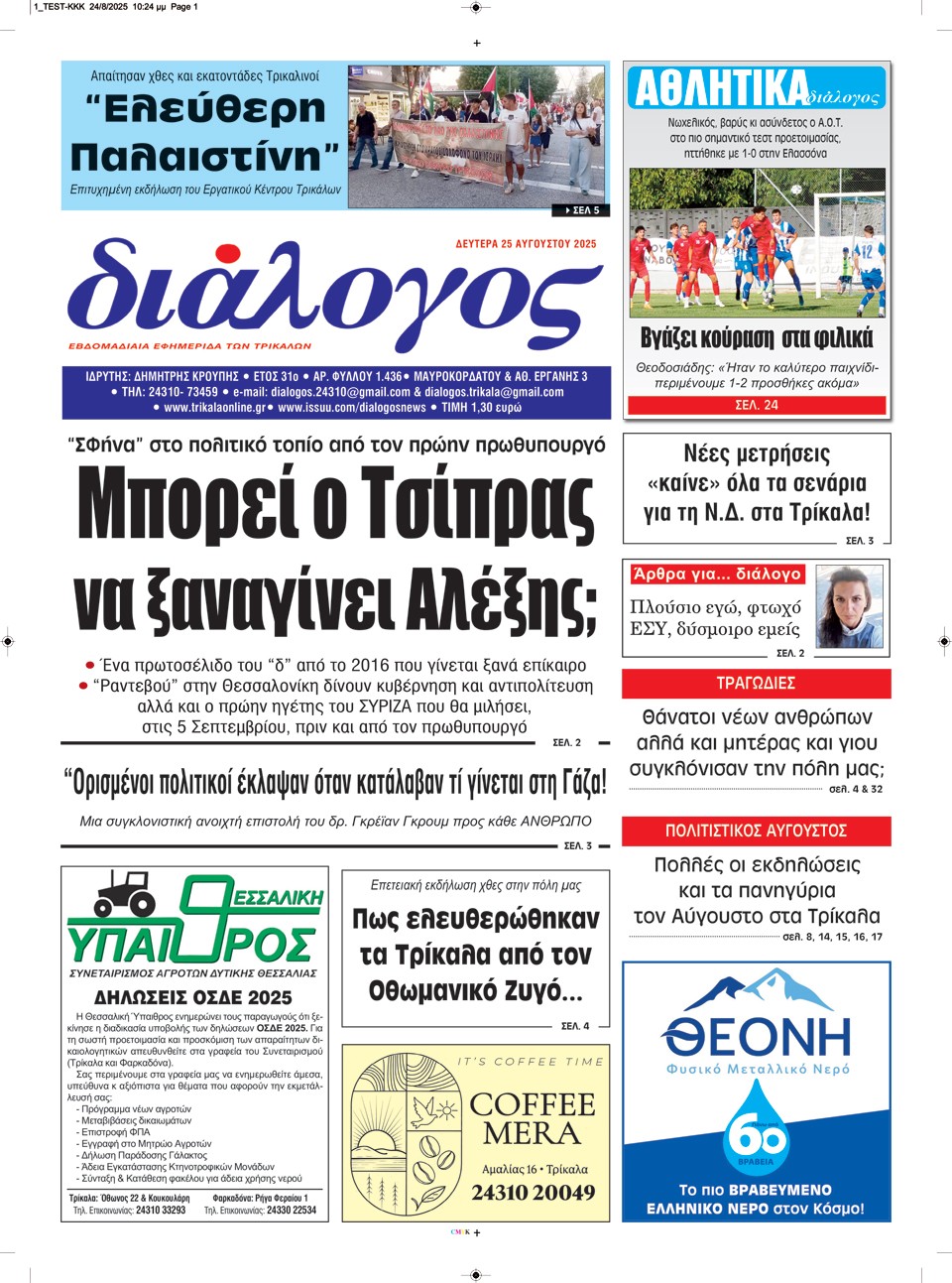 ΔΙΑΛΟΓΟΣ (ΤΡΙΚΑΛΑ) - 25 Αυγούστου 2025