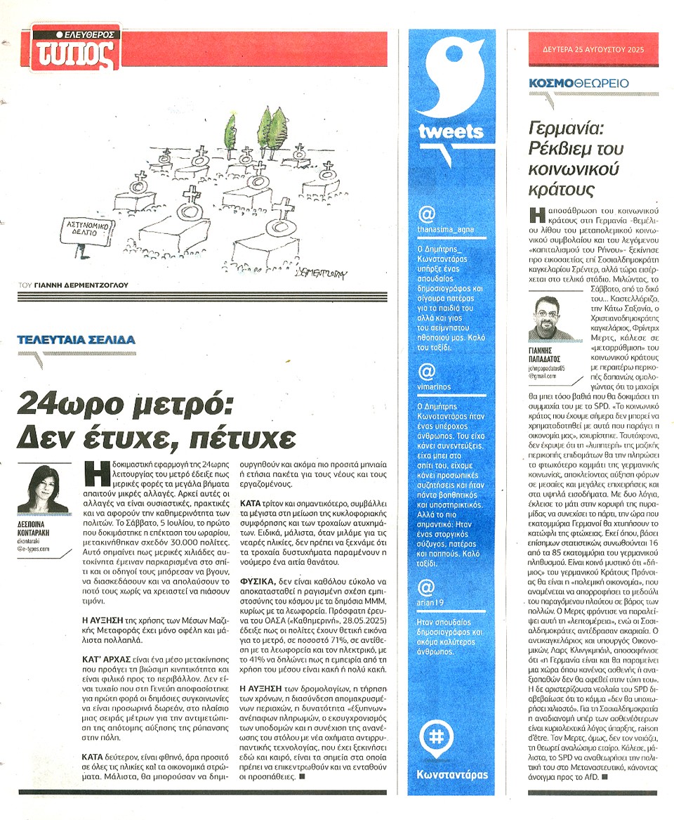 ΕΛΕΥΘΕΡΟΣ ΤΥΠΟΣ - 25 Αυγούστου 2025