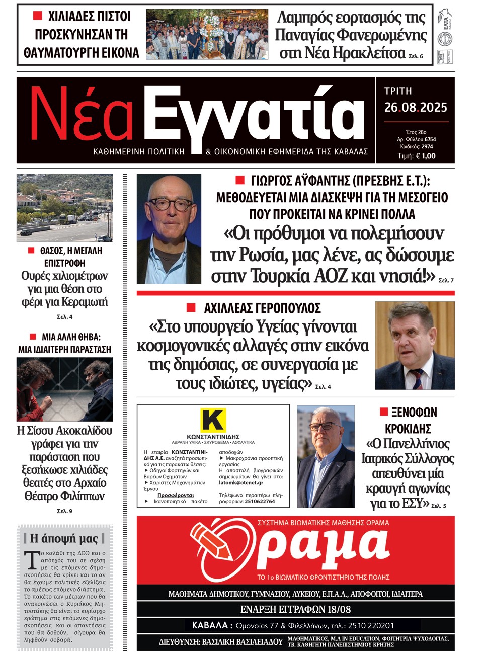 ΝΕΑ ΕΓΝΑΤΙΑ - 26 Αυγούστου 2025