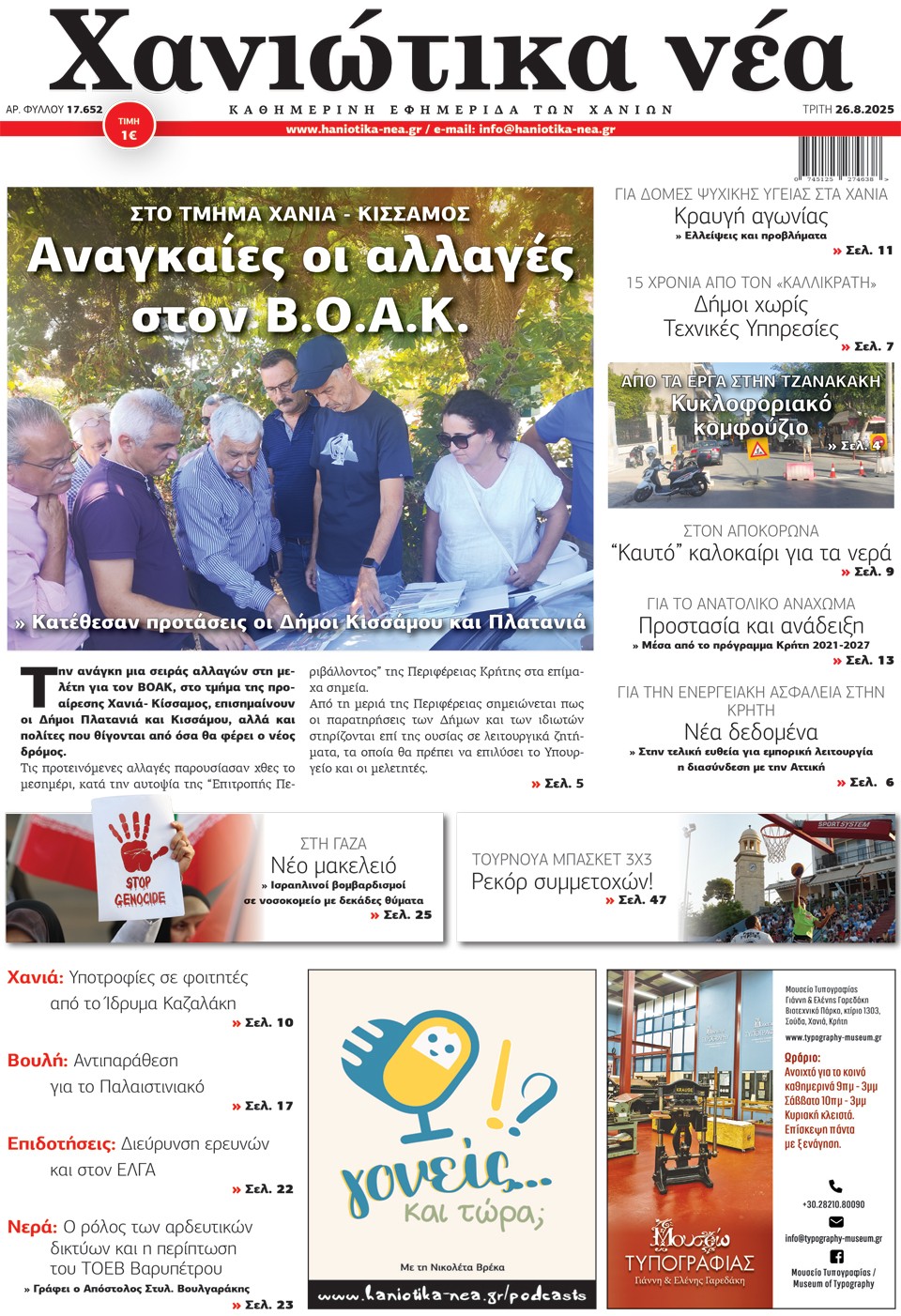 ΧΑΝΙΩΤΙΚΑ ΝΕΑ - 26 Αυγούστου 2025