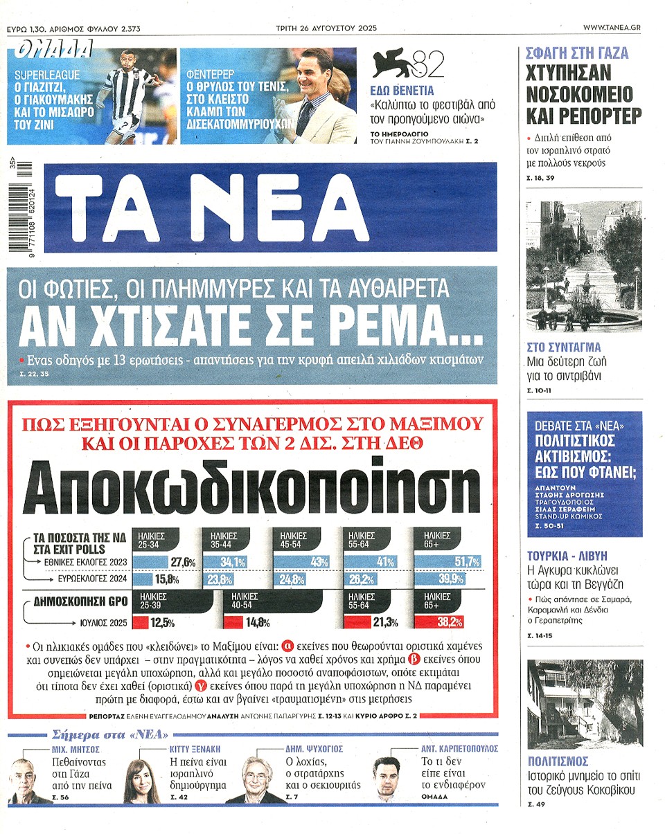 ΤΑ ΝΕΑ - 26 Αυγούστου 2025