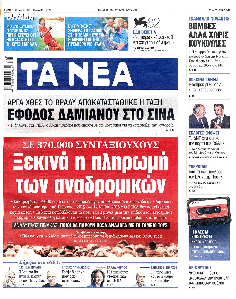 ΤΑ ΝΕΑ - 27 Αυγούστου 2025