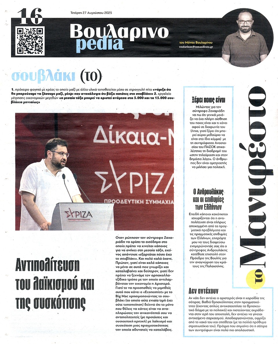 ΤΟ ΜΑΝΙΦΕΣΤΟ - 27 Αυγούστου 2025