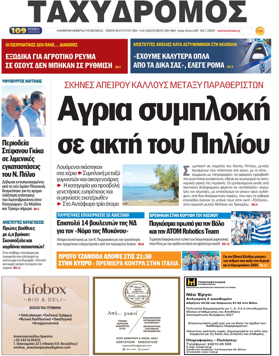 ΤΑΧΥΔΡΟΜΟΣ - 28 Αυγούστου 2025