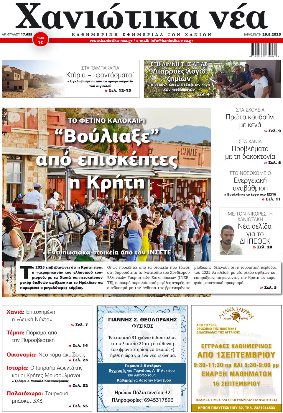 ΧΑΝΙΩΤΙΚΑ ΝΕΑ - 29 Αυγούστου 2025