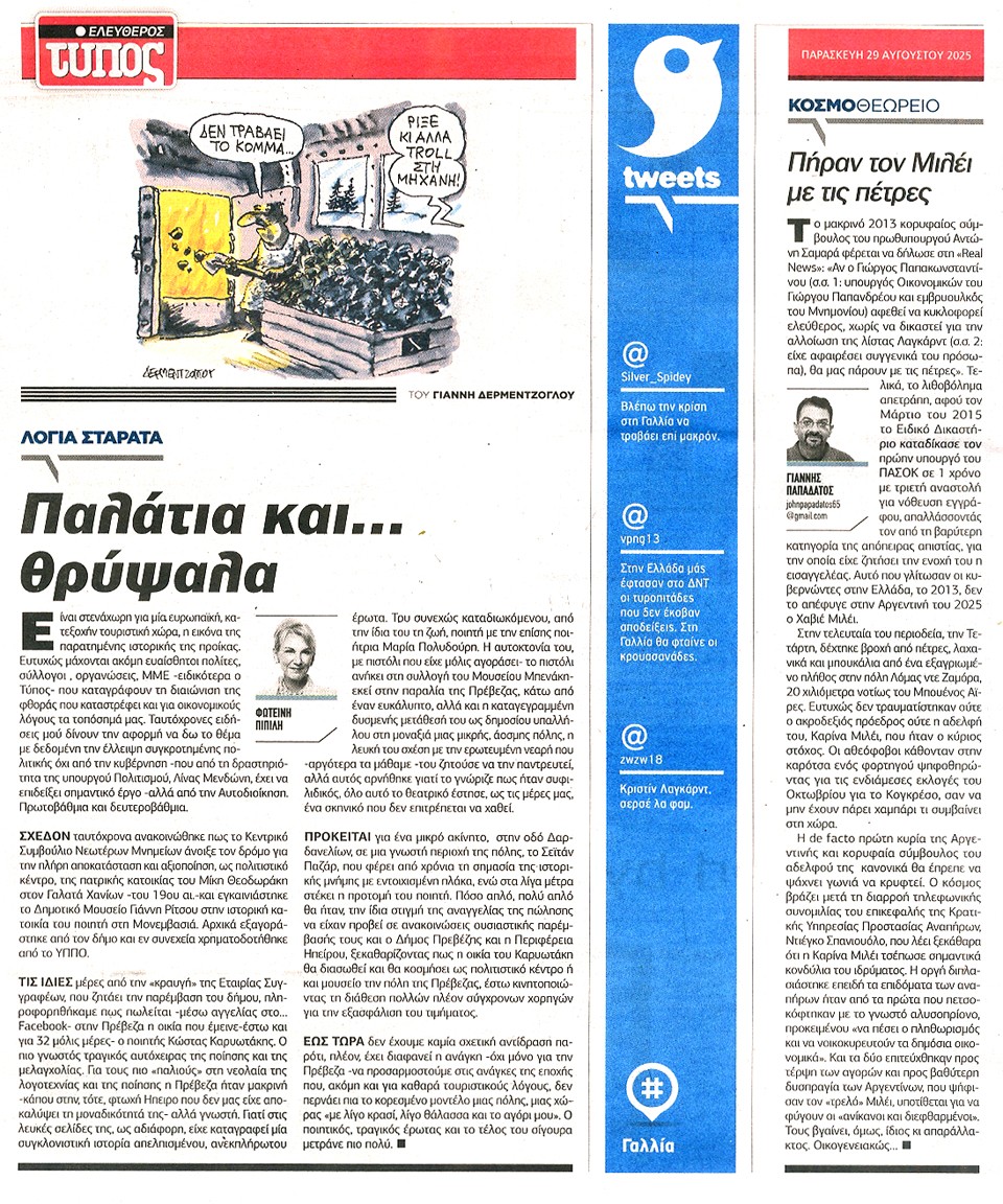 ΕΛΕΥΘΕΡΟΣ ΤΥΠΟΣ - 29 Αυγούστου 2025