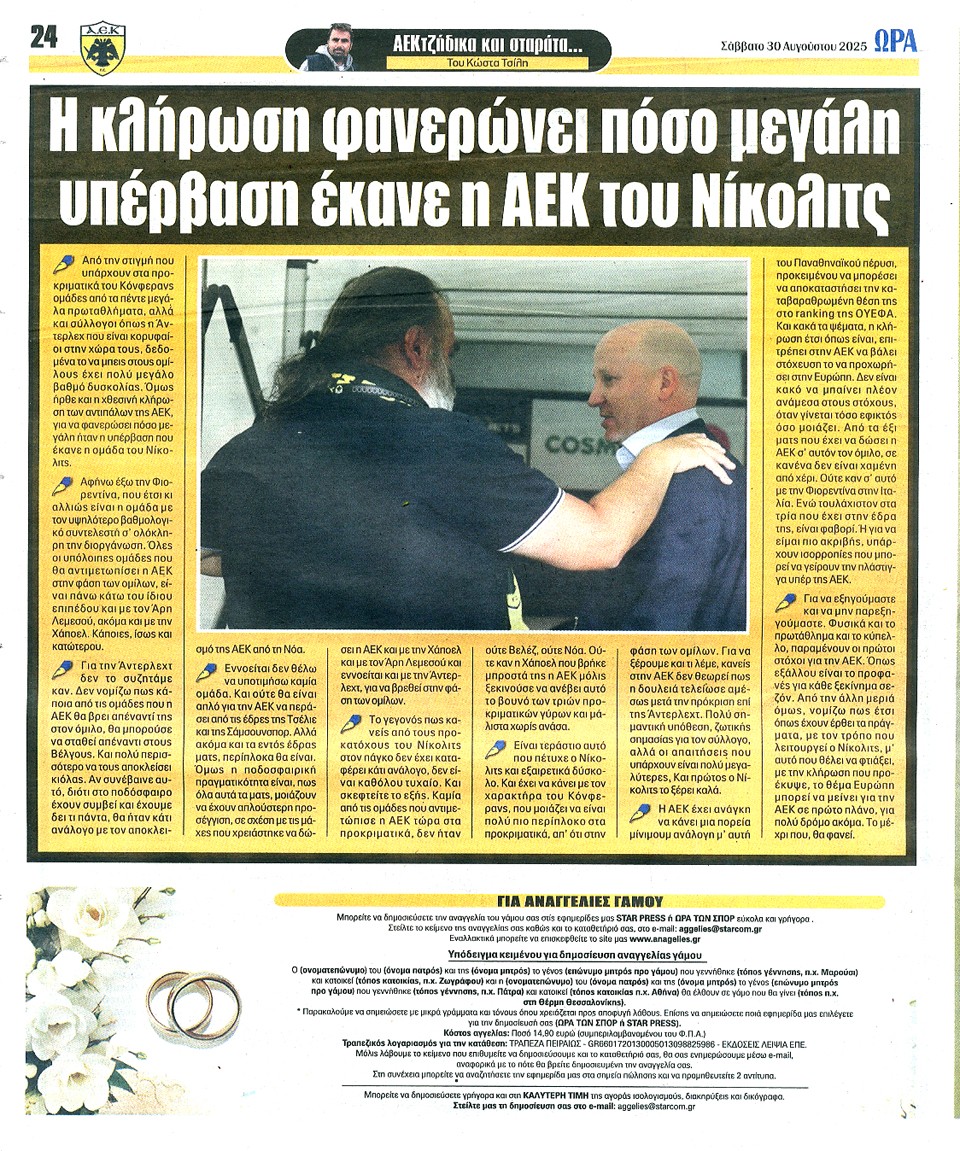 ΑΘΛΗΤΙΚΗ ΩΡΑ ΤΩΝ ΣΠΟΡ - 30 Αυγούστου 2025