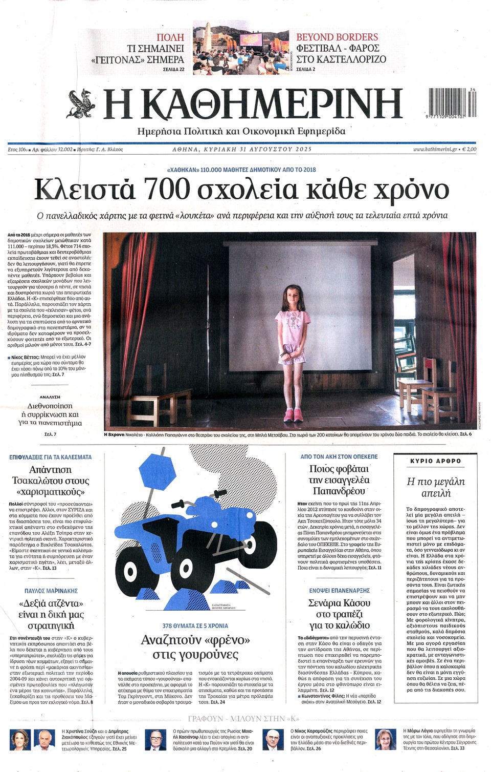 ΚΑΘΗΜΕΡΙΝΗ ΤΗΣ ΚΥΡΙΑΚΗΣ - 31 Αυγούστου 2025