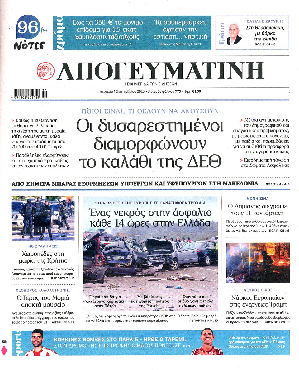 ΑΠΟΓΕΥΜΑΤΙΝΗ - 01 Σεπτεμβρίου 2025