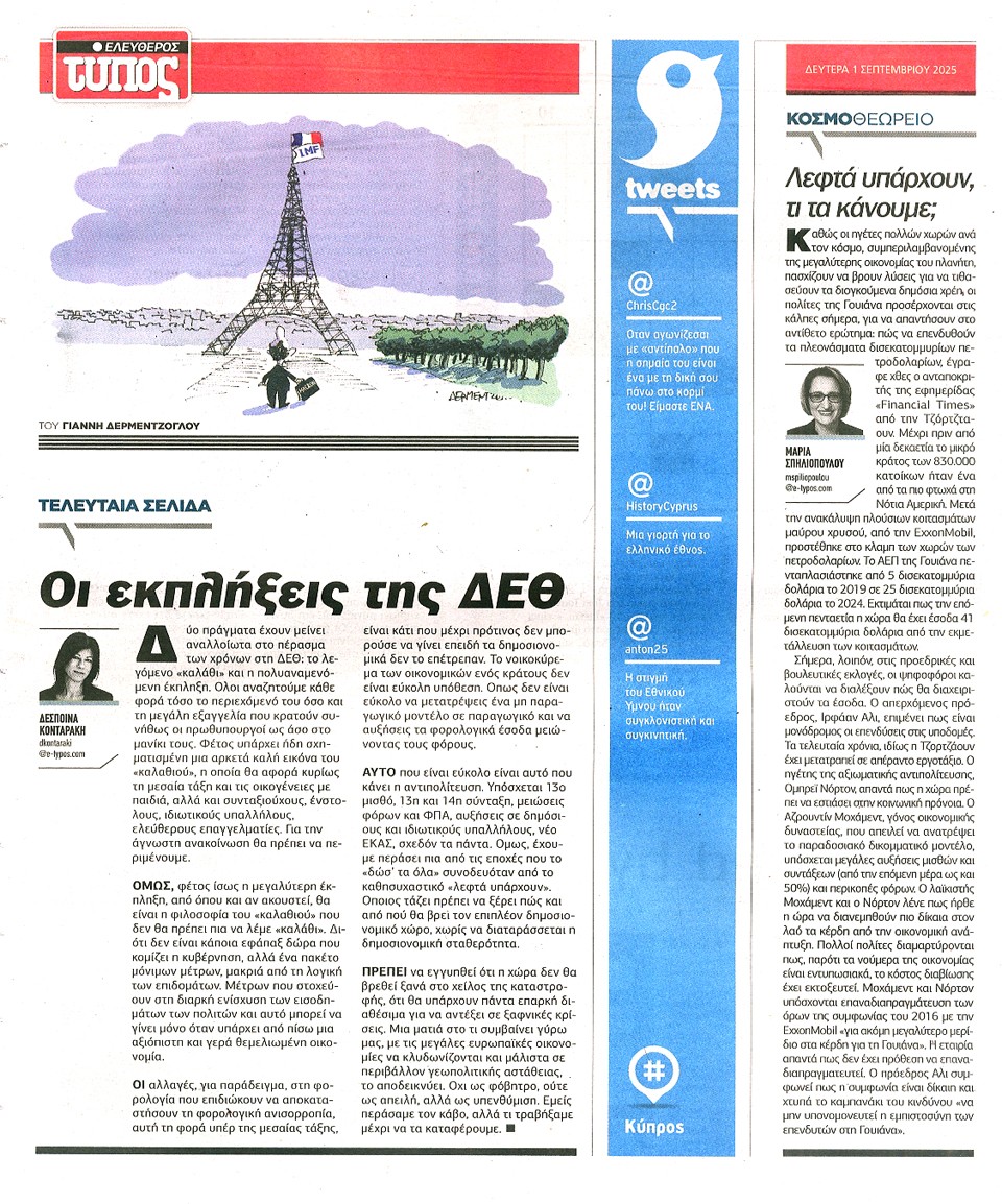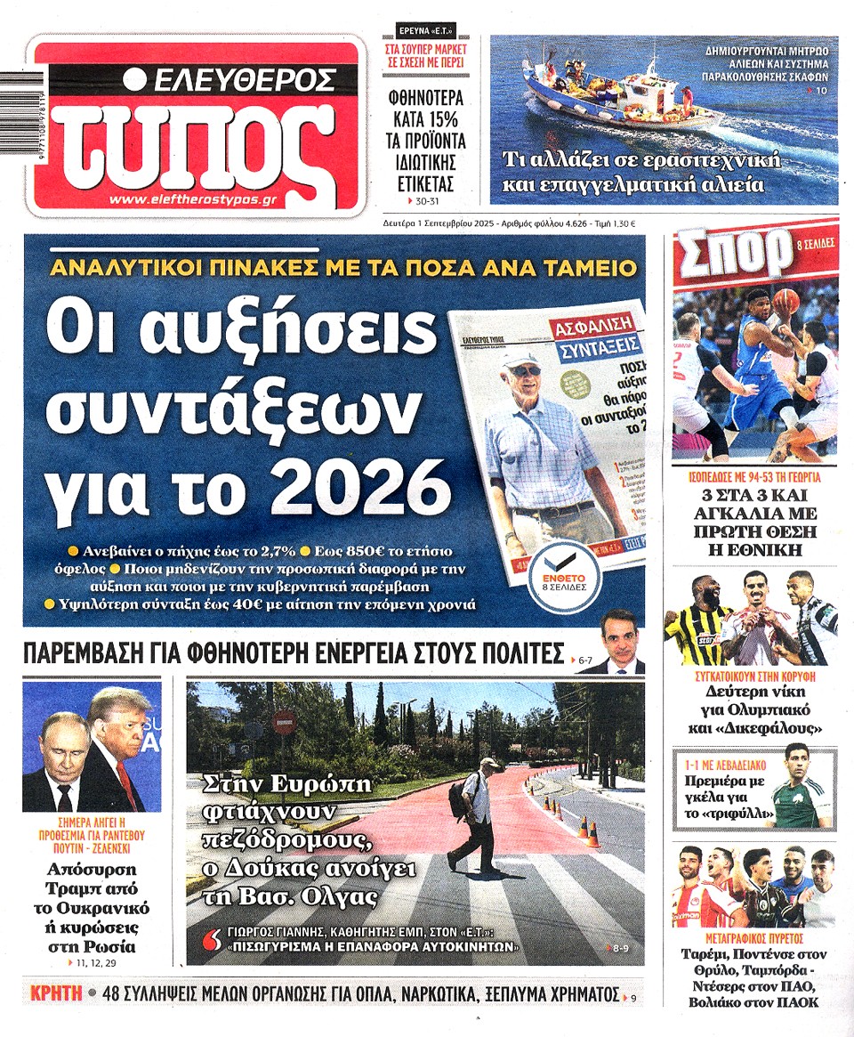 ΕΛΕΥΘΕΡΟΣ ΤΥΠΟΣ - 01 Σεπτεμβρίου 2025