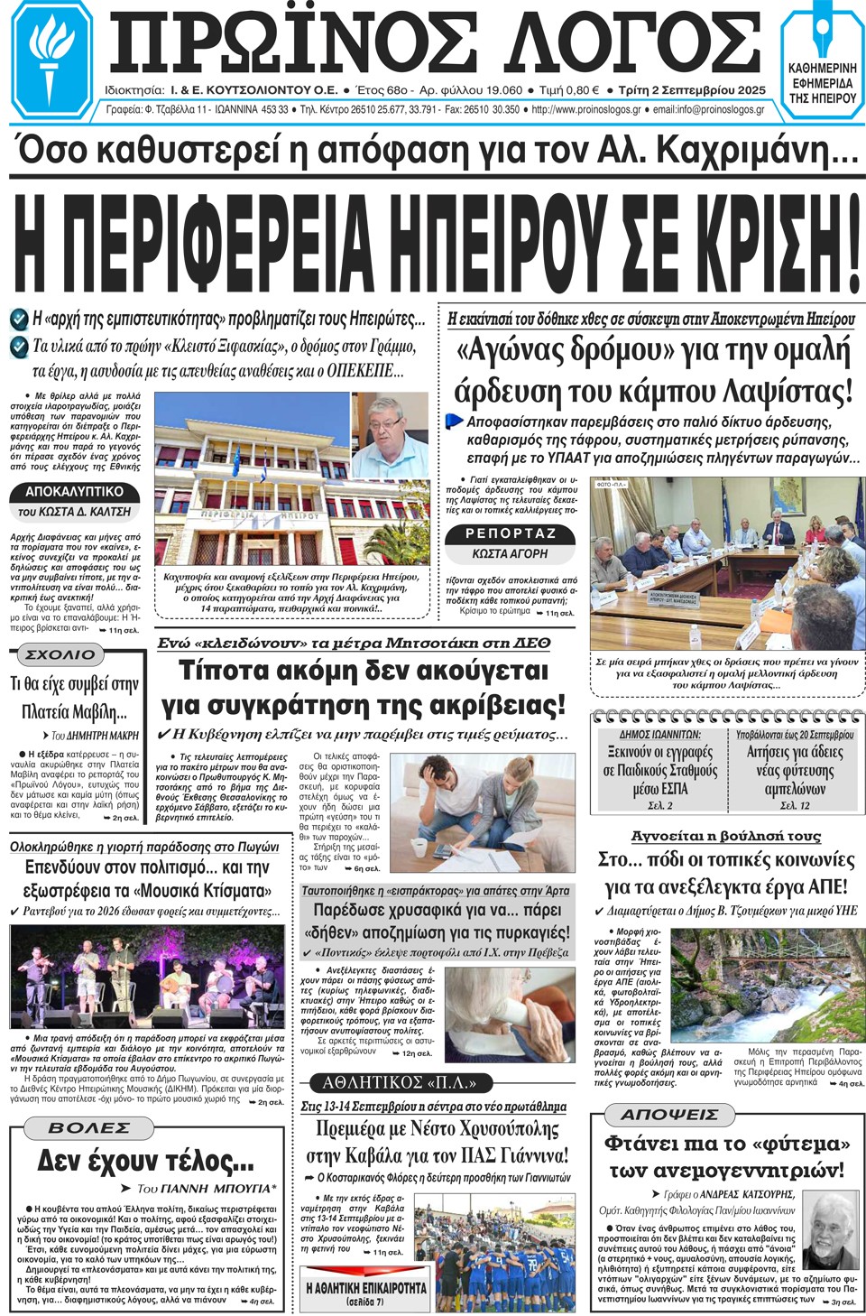 ΠΡΩΙΝΟΣ ΛΟΓΟΣ - 02 Σεπτεμβρίου 2025