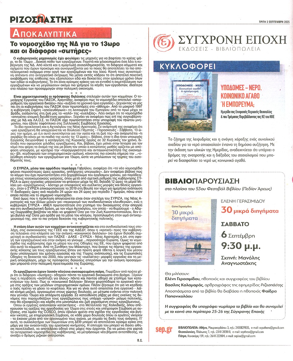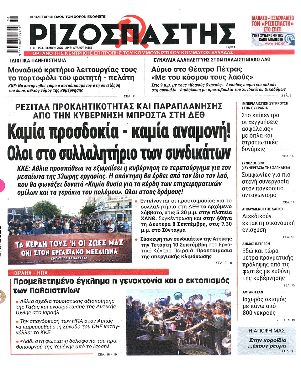 ΡΙΖΟΣΠΑΣΤΗΣ - 02 Σεπτεμβρίου 2025