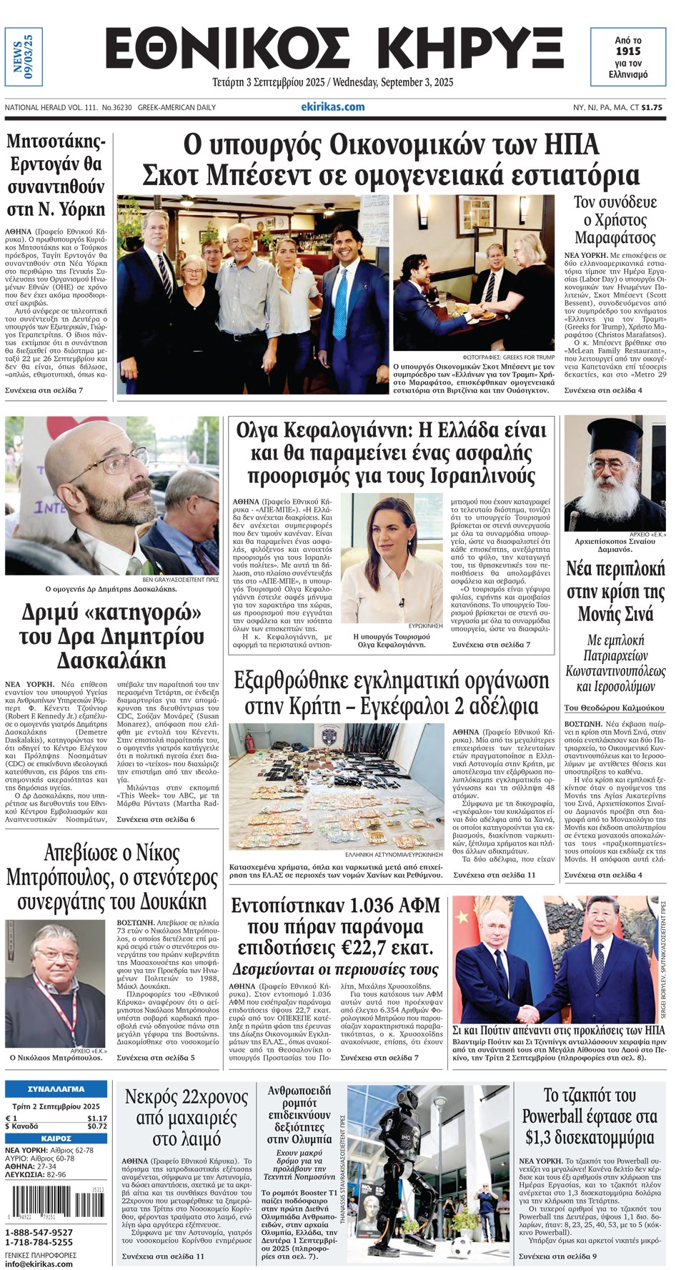 ΕΘΝΙΚΟΣ ΚΗΡΥΞ - 03 Σεπτεμβρίου 2025