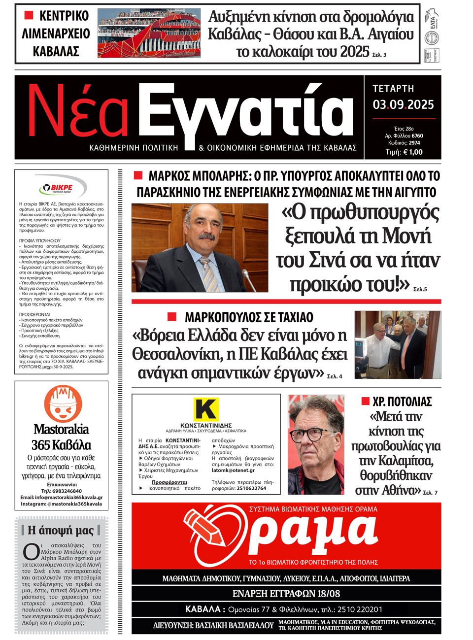 ΝΕΑ ΕΓΝΑΤΙΑ - 03 Σεπτεμβρίου 2025
