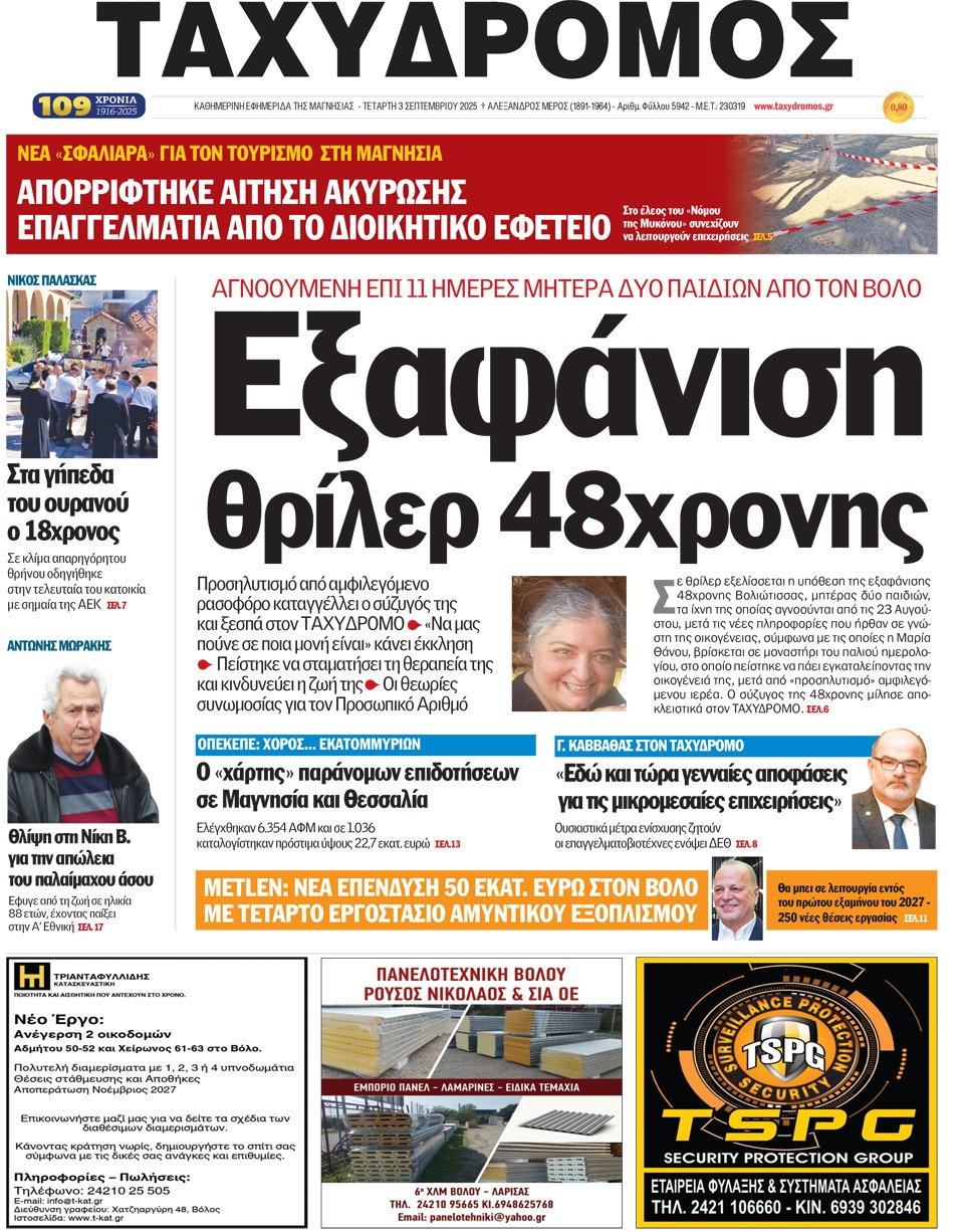 ΤΑΧΥΔΡΟΜΟΣ - 03 Σεπτεμβρίου 2025
