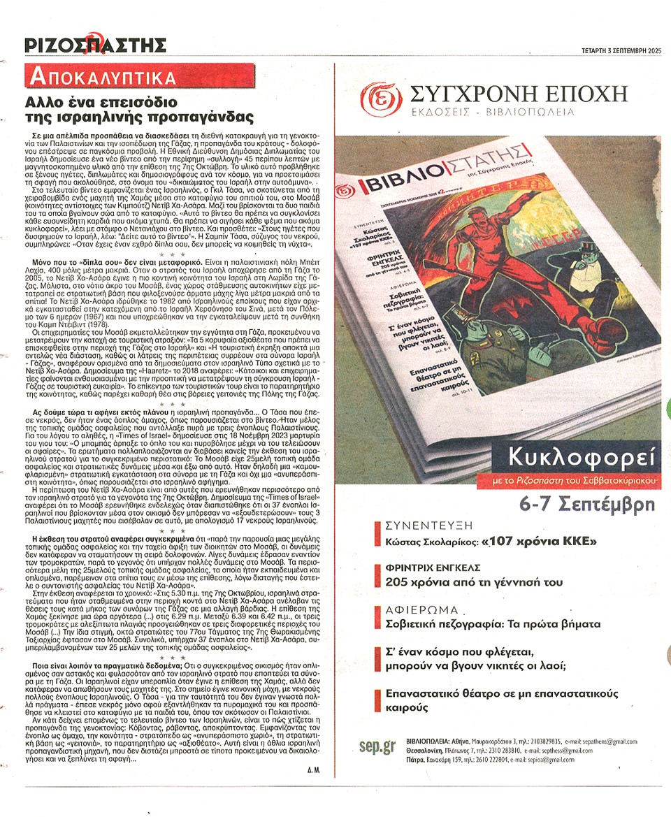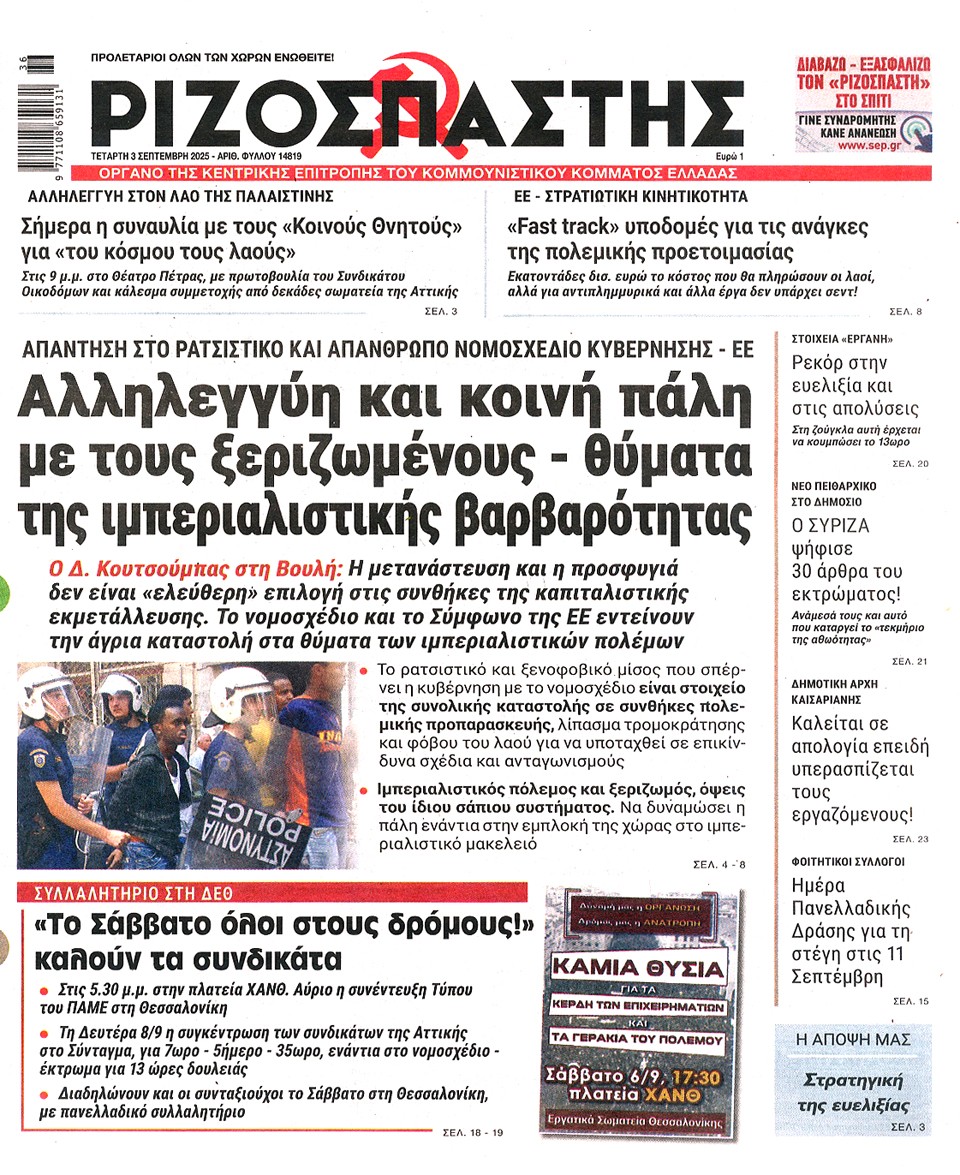 ΡΙΖΟΣΠΑΣΤΗΣ - 03 Σεπτεμβρίου 2025