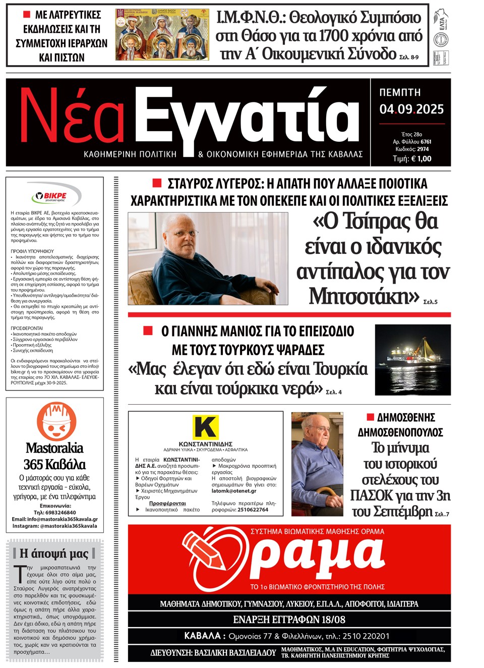 ΝΕΑ ΕΓΝΑΤΙΑ - 04 Σεπτεμβρίου 2025