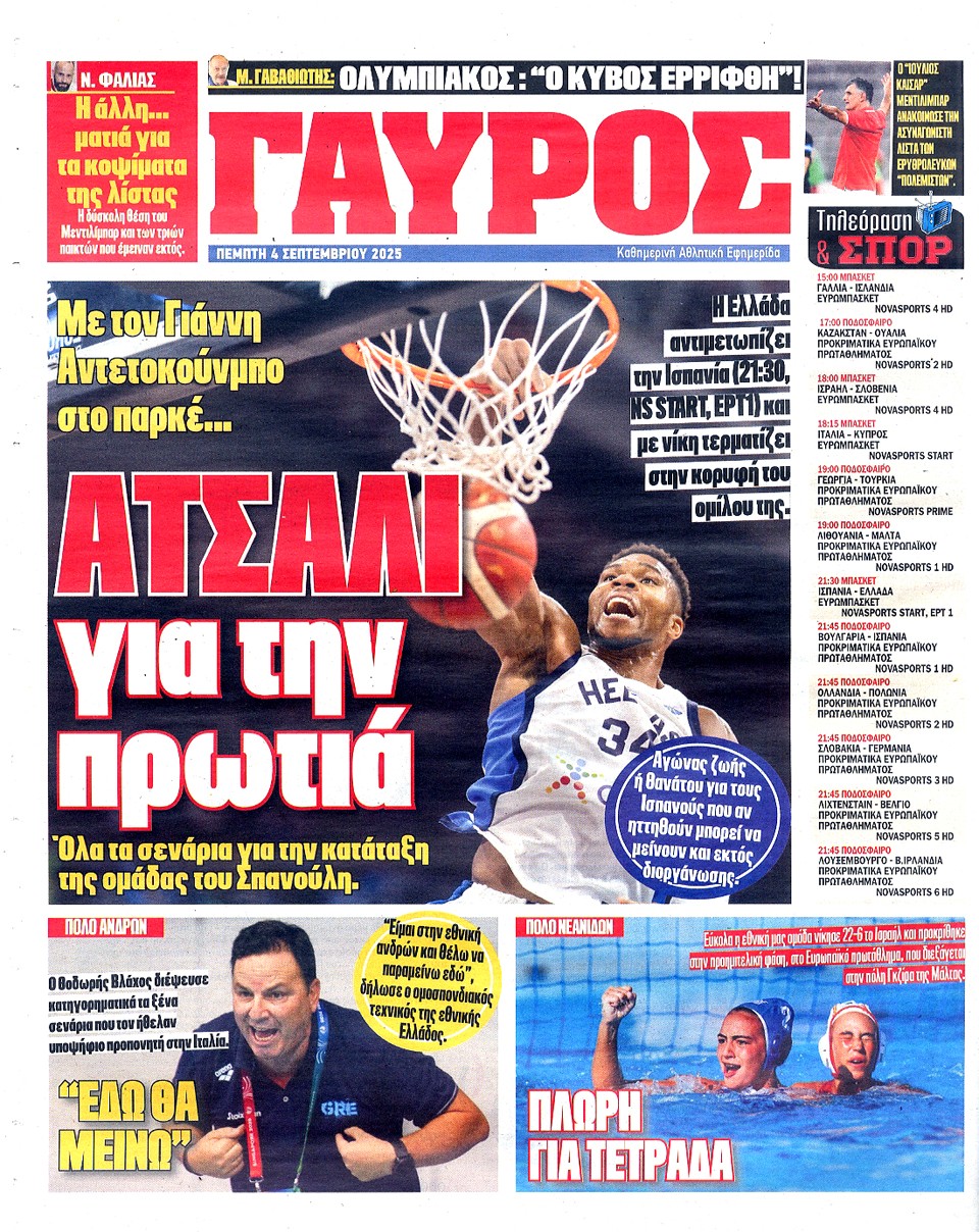 ΠΡΩΤΑΘΛΗΤΗΣ - 04 Σεπτεμβρίου 2025