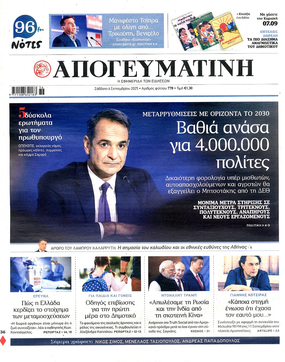 ΑΠΟΓΕΥΜΑΤΙΝΗ - 06 Σεπτεμβρίου 2025