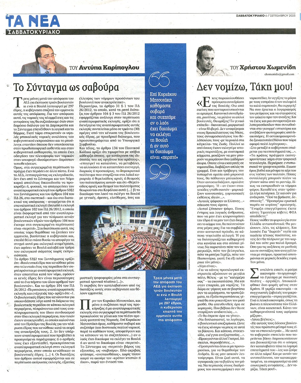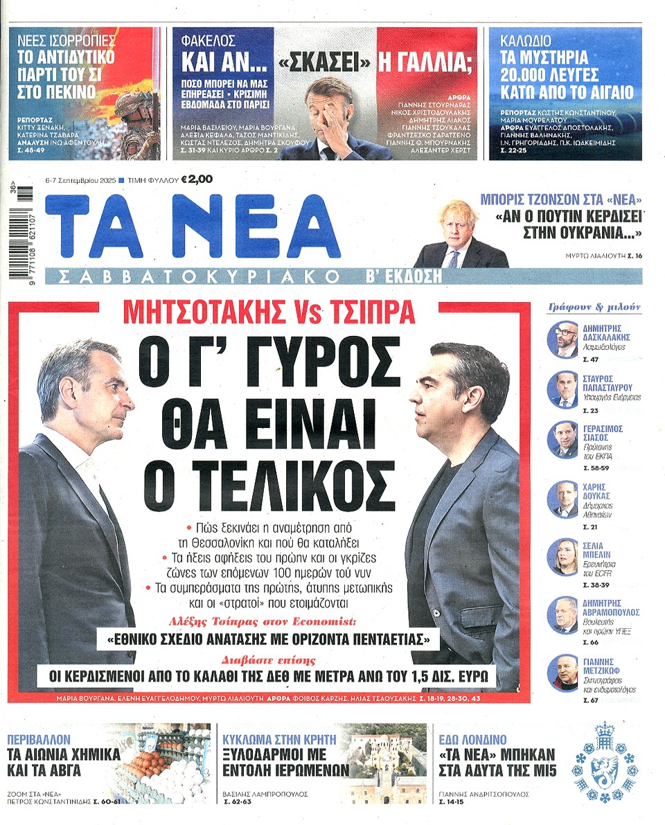 ΤΑ ΝΕΑ - 06 Σεπτεμβρίου 2025