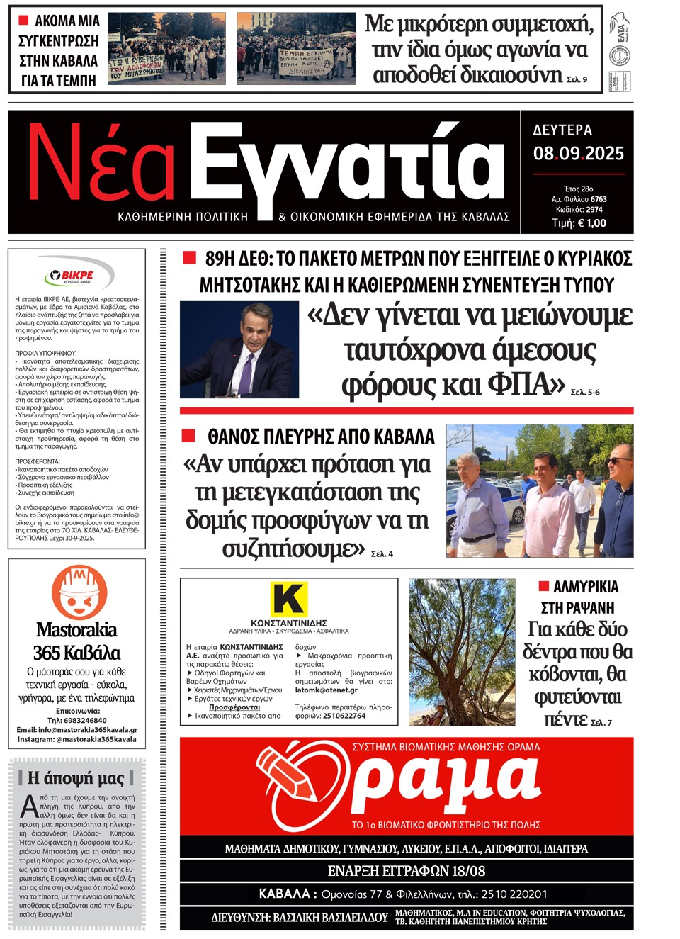 ΝΕΑ ΕΓΝΑΤΙΑ - 08 Σεπτεμβρίου 2025