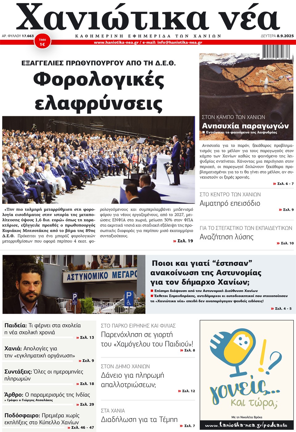 ΧΑΝΙΩΤΙΚΑ ΝΕΑ - 08 Σεπτεμβρίου 2025