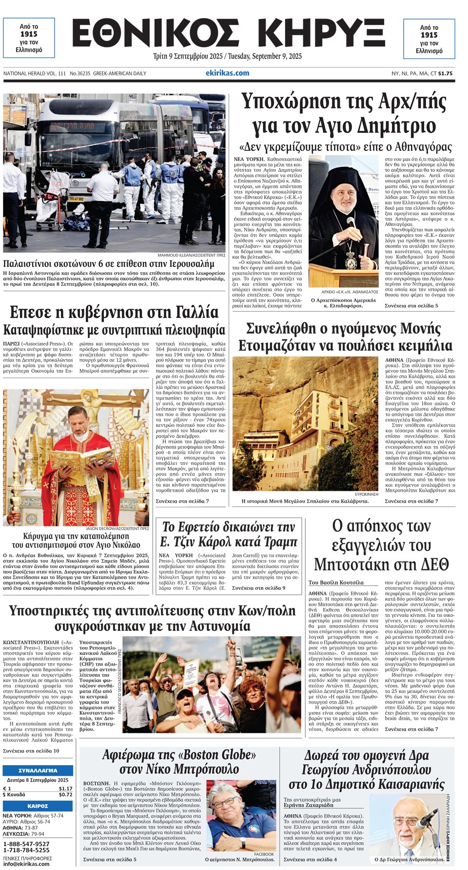 ΕΘΝΙΚΟΣ ΚΗΡΥΞ - 09 Σεπτεμβρίου 2025