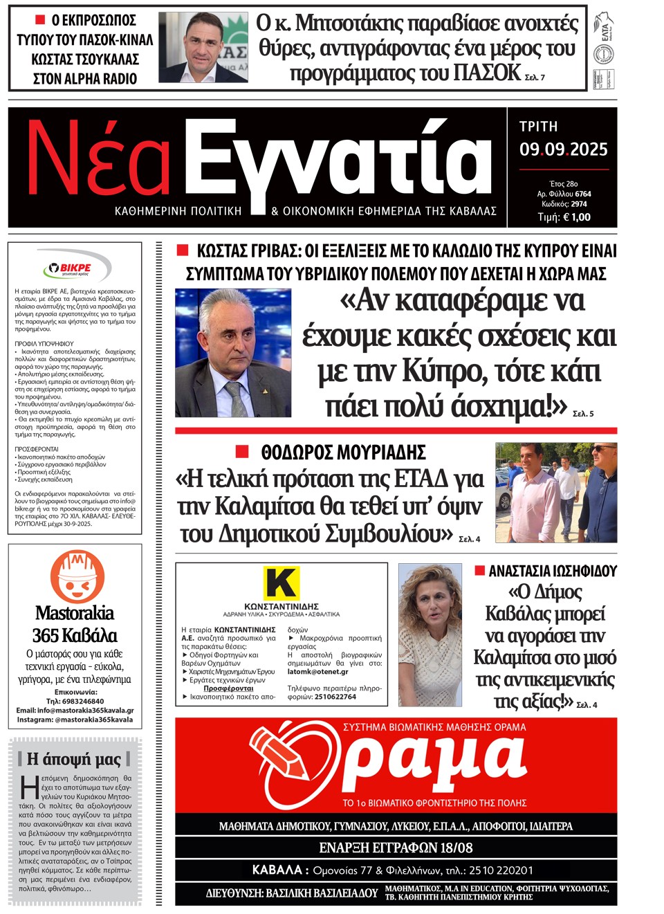ΝΕΑ ΕΓΝΑΤΙΑ - 09 Σεπτεμβρίου 2025