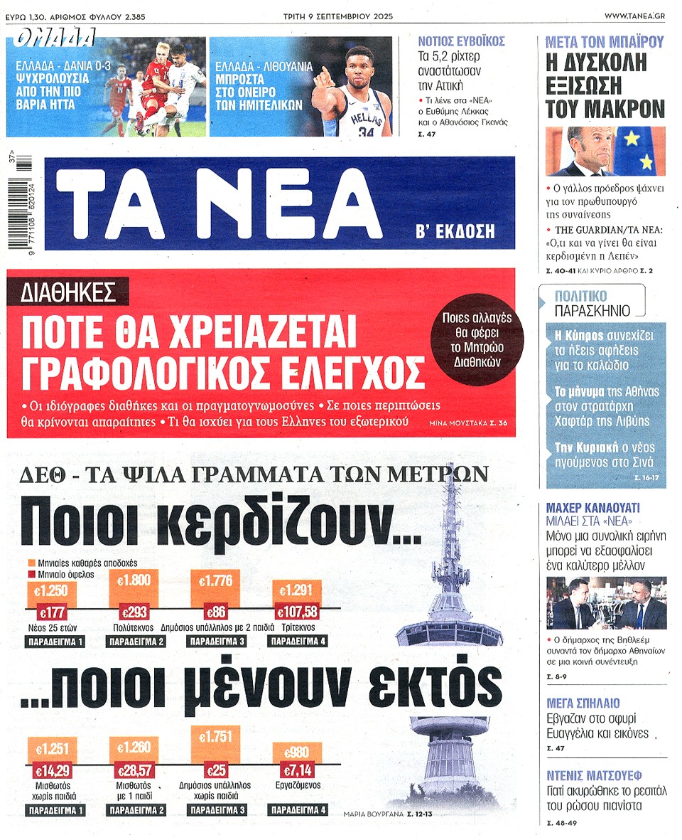 ΤΑ ΝΕΑ - 09 Σεπτεμβρίου 2025
