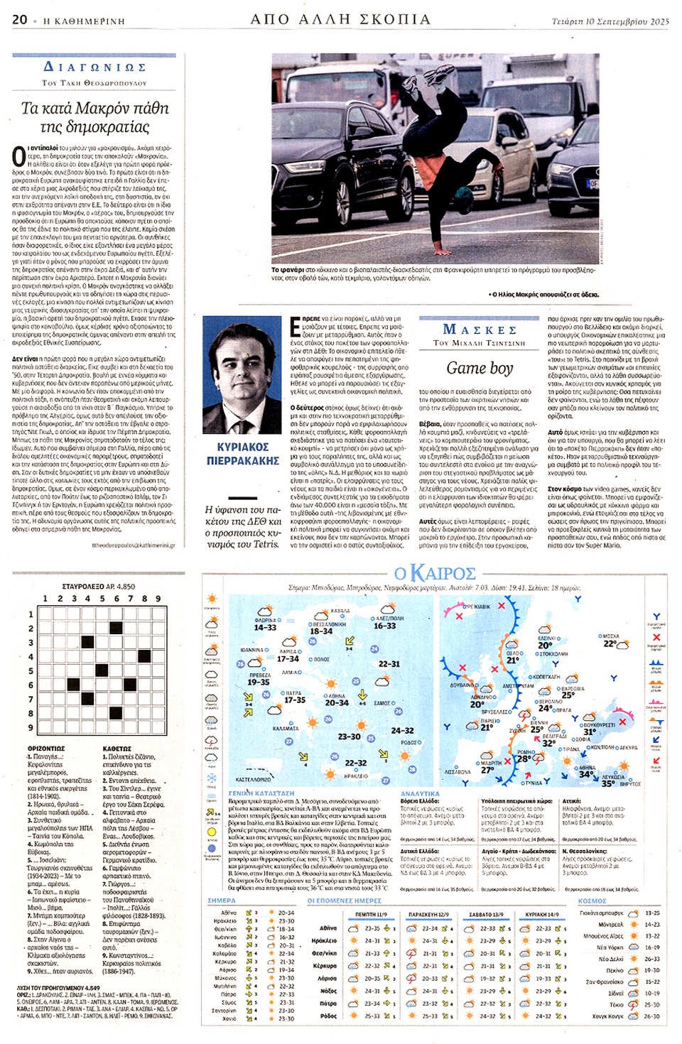 ΚΑΘΗΜΕΡΙΝΗ - 10 Σεπτεμβρίου 2025