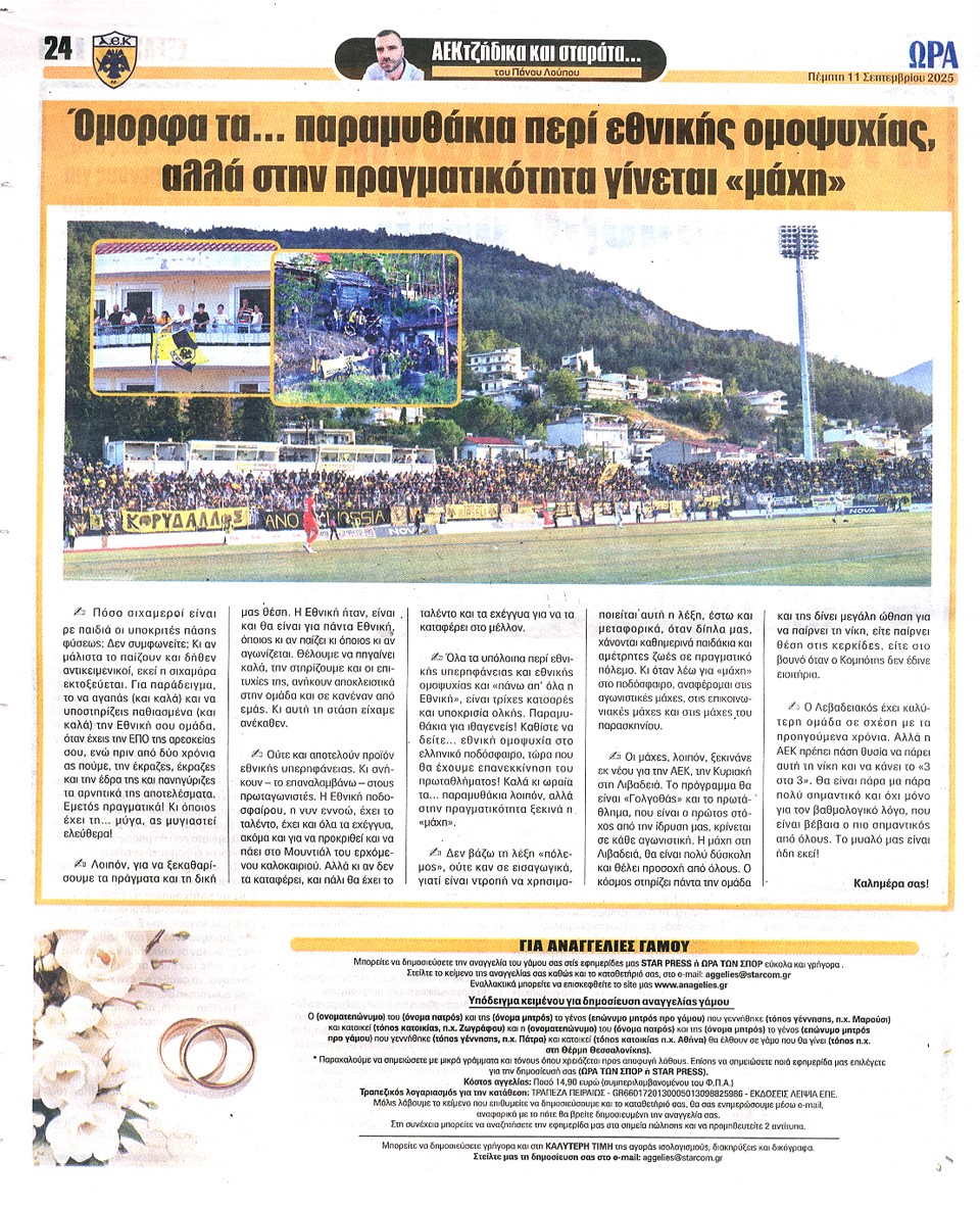 ΑΘΛΗΤΙΚΗ ΩΡΑ ΤΩΝ ΣΠΟΡ - 11 Σεπτεμβρίου 2025