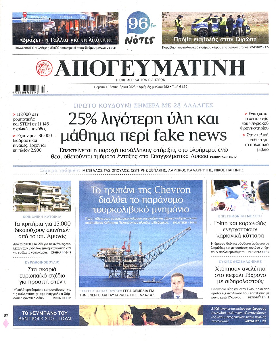 ΑΠΟΓΕΥΜΑΤΙΝΗ - 11 Σεπτεμβρίου 2025