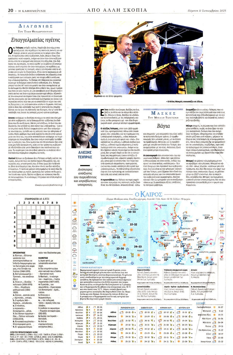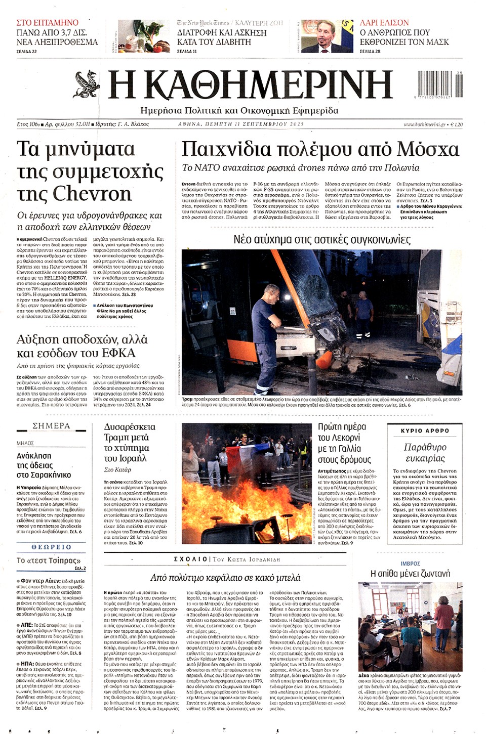 ΚΑΘΗΜΕΡΙΝΗ - 11 Σεπτεμβρίου 2025