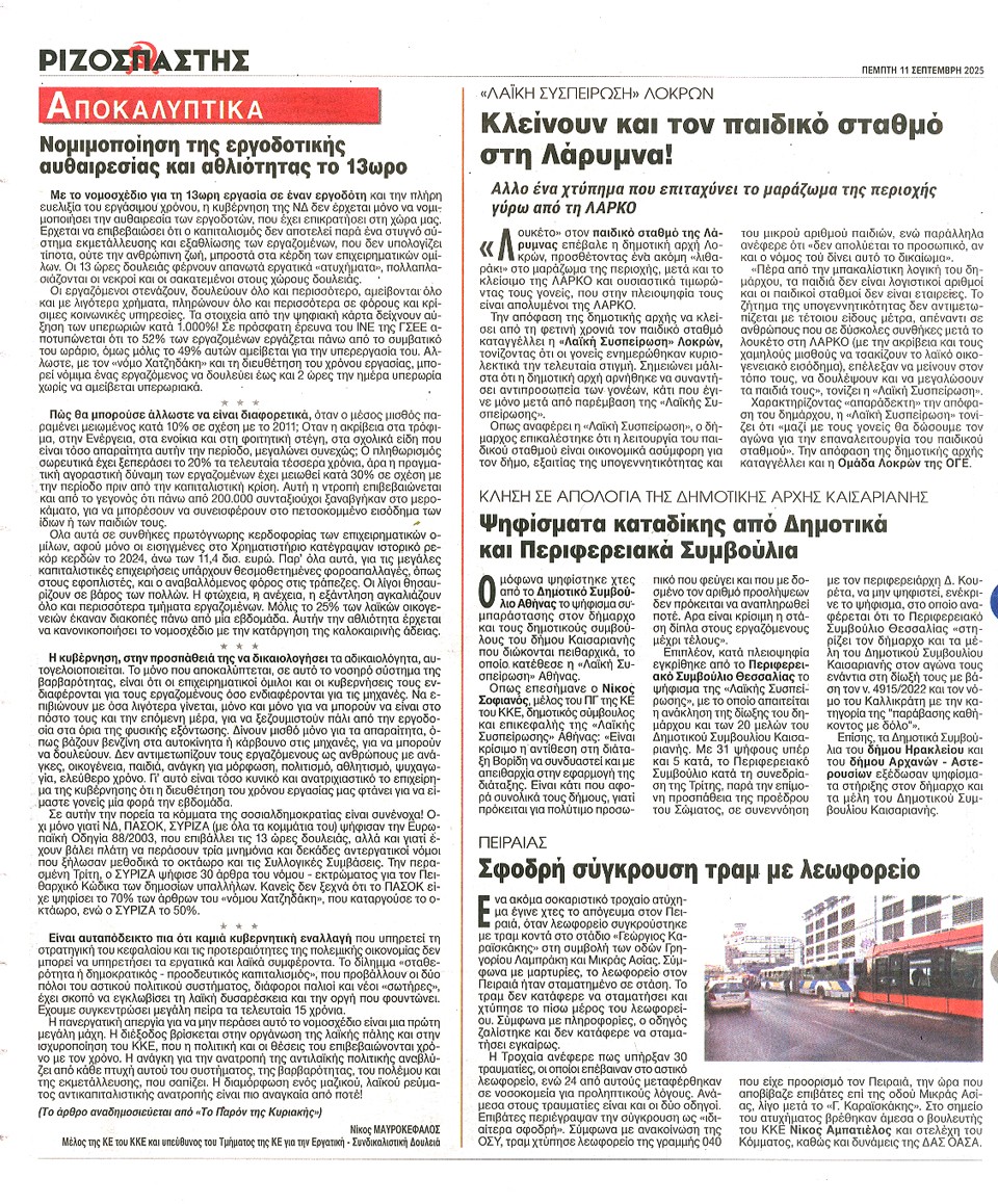 ΡΙΖΟΣΠΑΣΤΗΣ - 11 Σεπτεμβρίου 2025