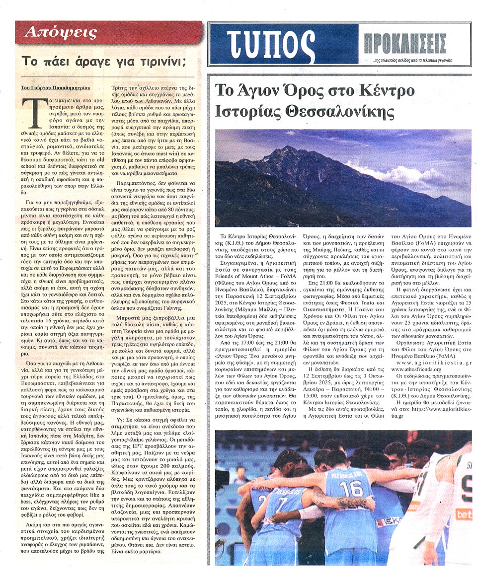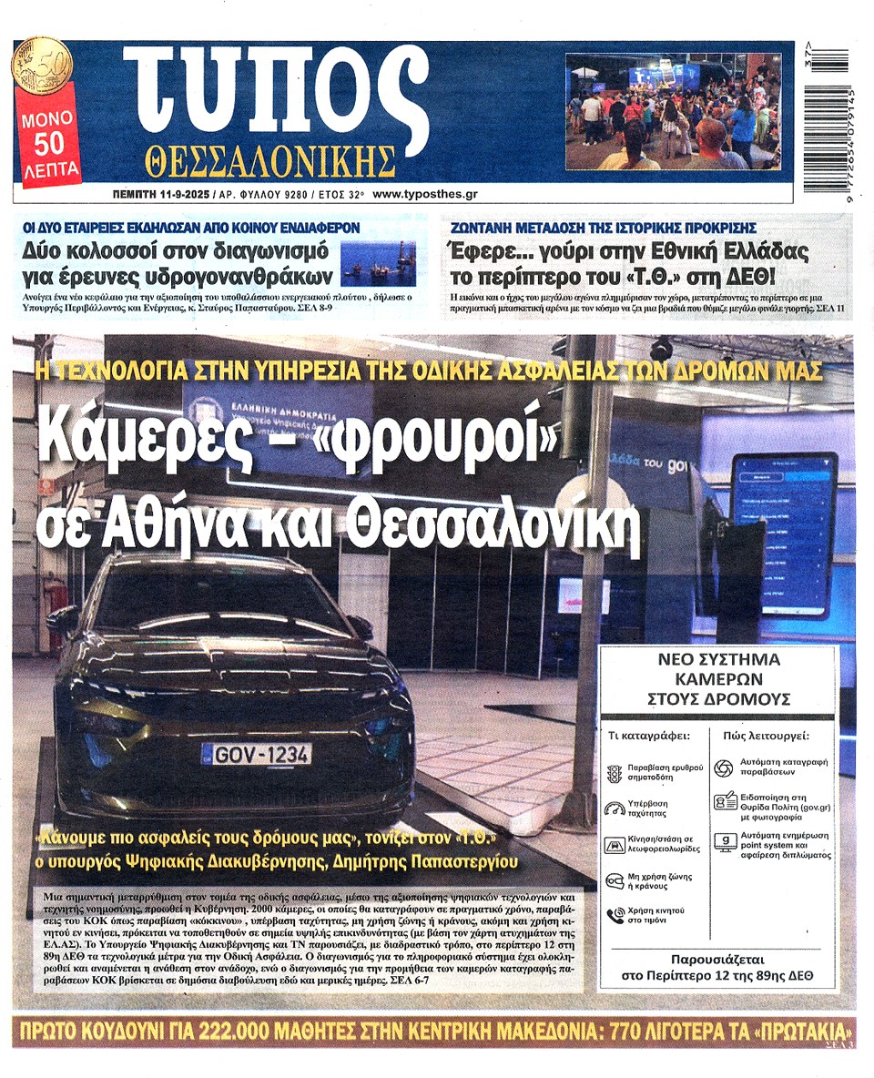 ΤΥΠΟΣ ΘΕΣΣΑΛΟΝΙΚΗΣ - 11 Σεπτεμβρίου 2025