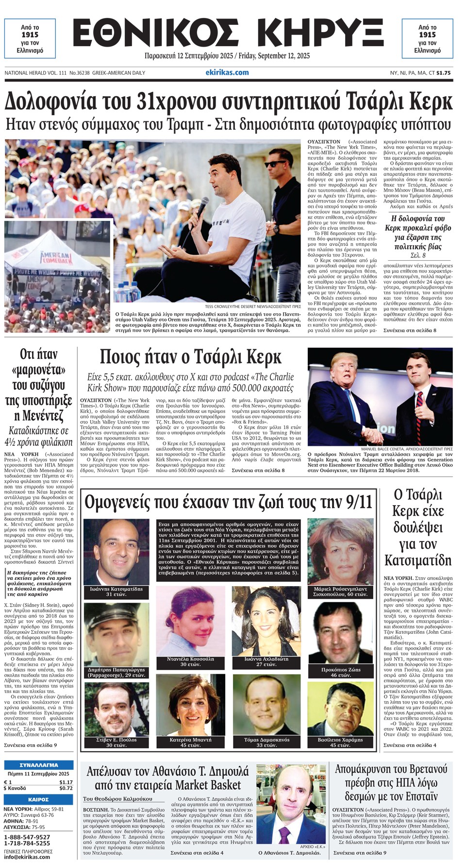 ΕΘΝΙΚΟΣ ΚΗΡΥΞ - 12 Σεπτεμβρίου 2025