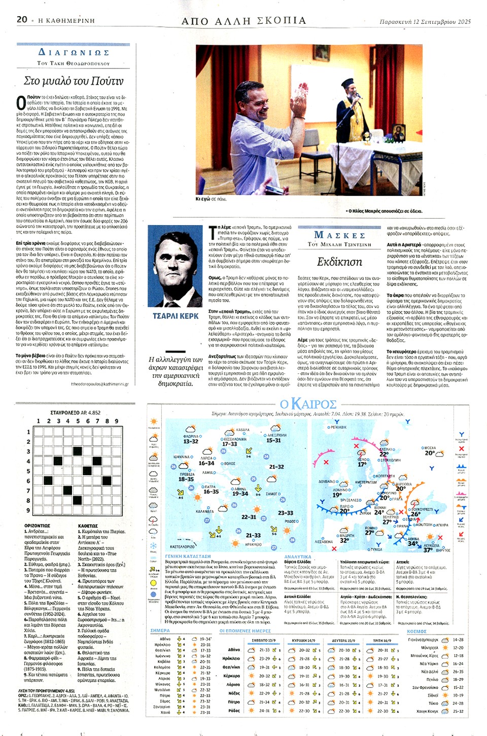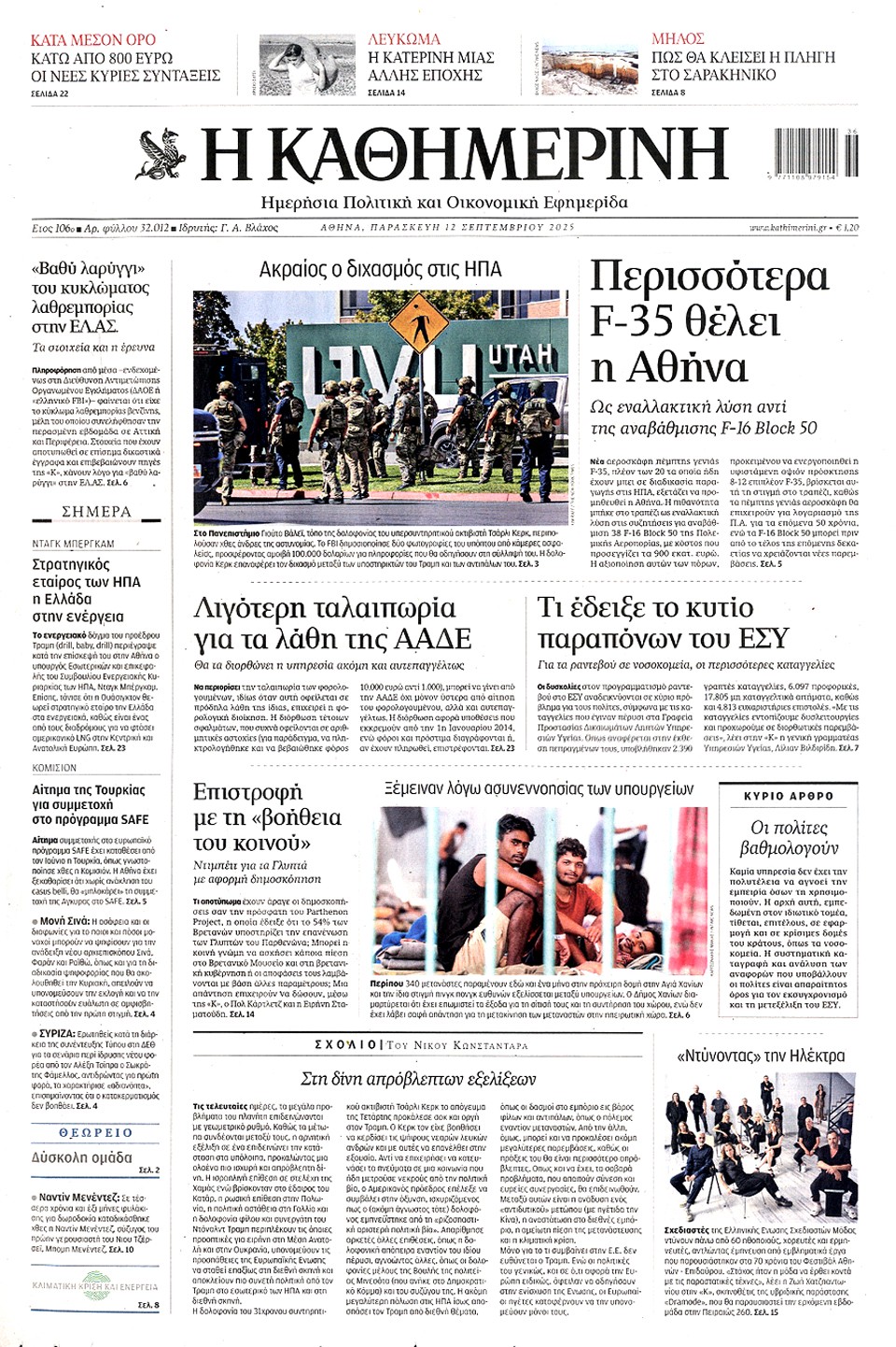 ΚΑΘΗΜΕΡΙΝΗ - 12 Σεπτεμβρίου 2025