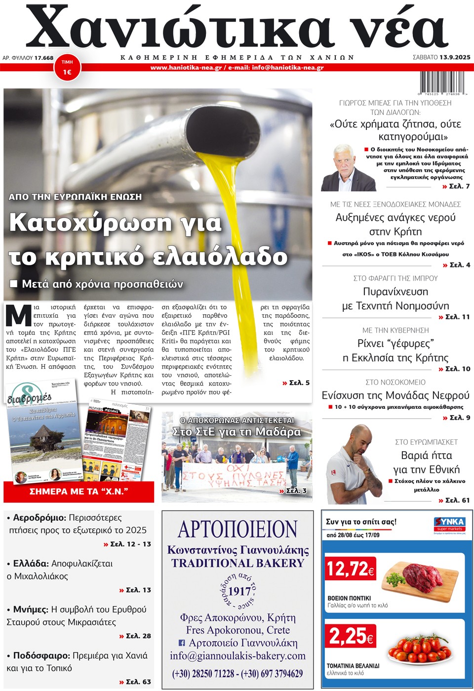 ΧΑΝΙΩΤΙΚΑ ΝΕΑ - 13 Σεπτεμβρίου 2025
