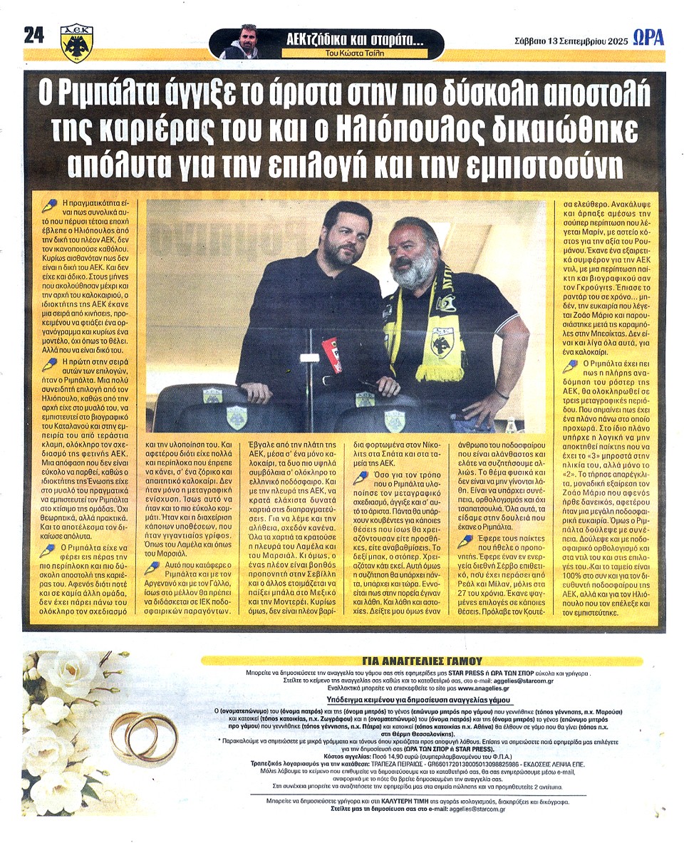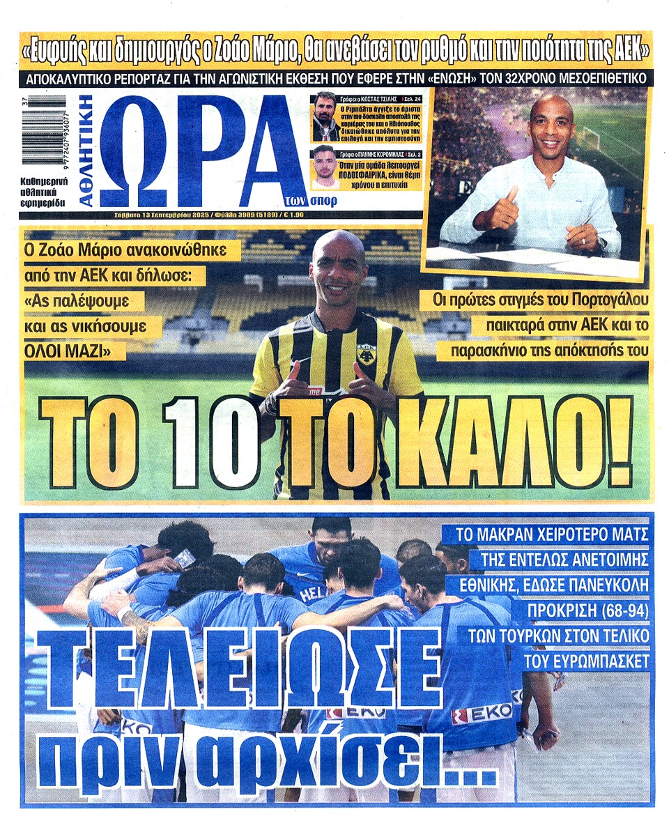ΑΘΛΗΤΙΚΗ ΩΡΑ ΤΩΝ ΣΠΟΡ - 13 Σεπτεμβρίου 2025