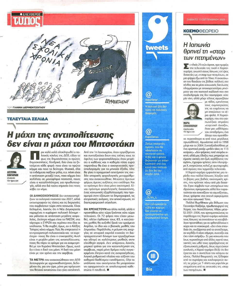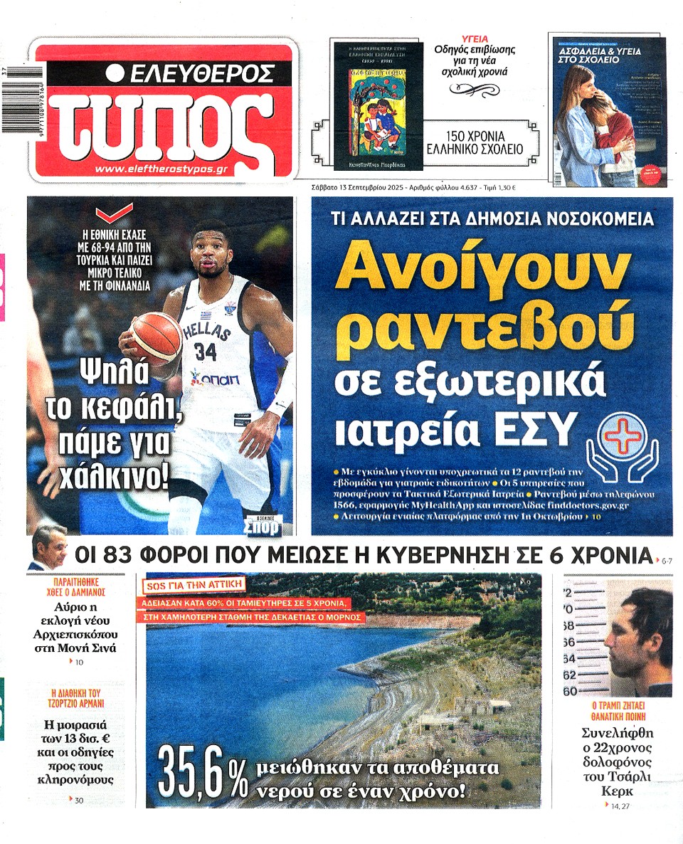 ΕΛΕΥΘΕΡΟΣ ΤΥΠΟΣ - 13 Σεπτεμβρίου 2025