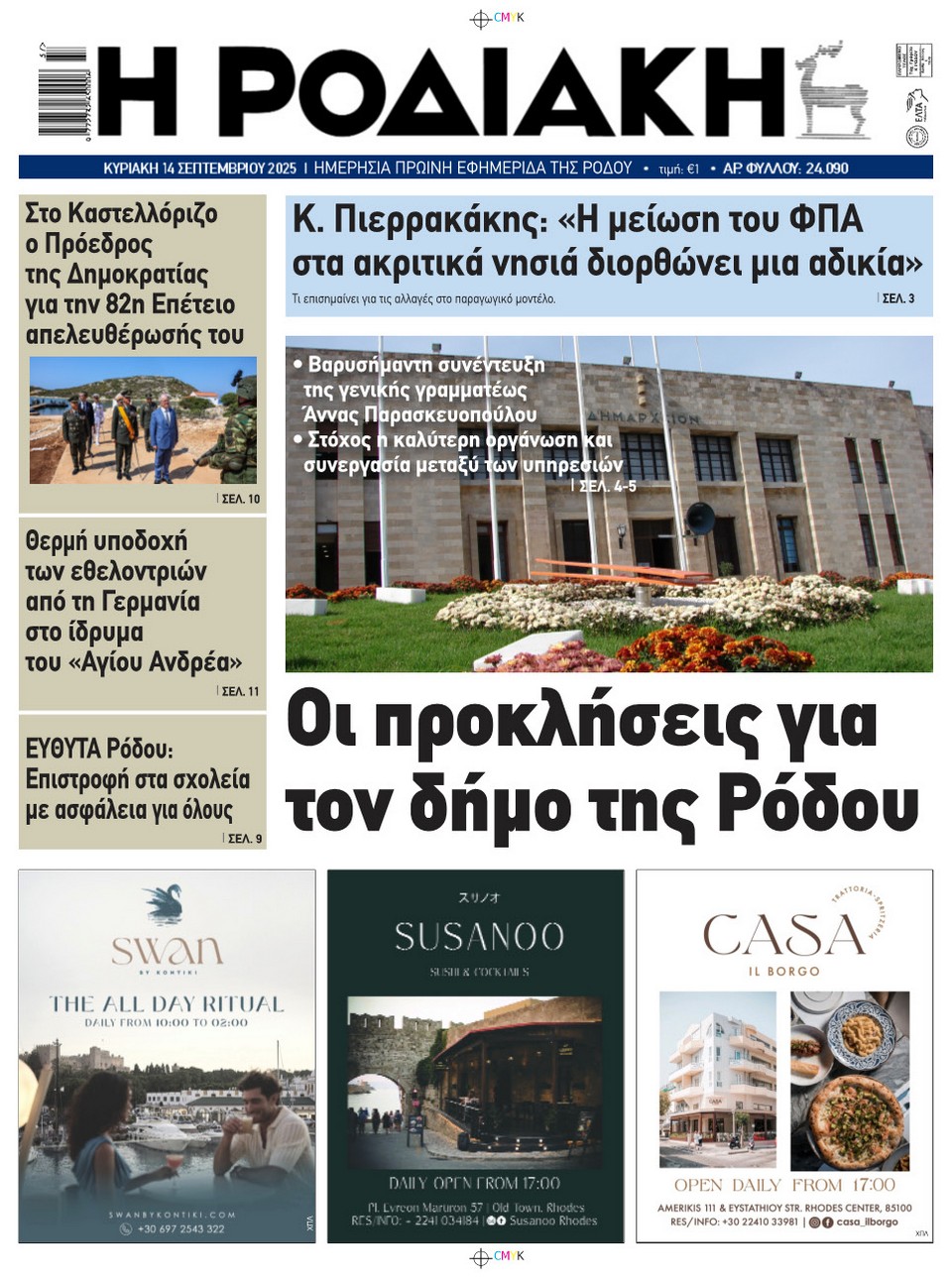 Η ΡΟΔΙΑΚΗ - 14 Σεπτεμβρίου 2025