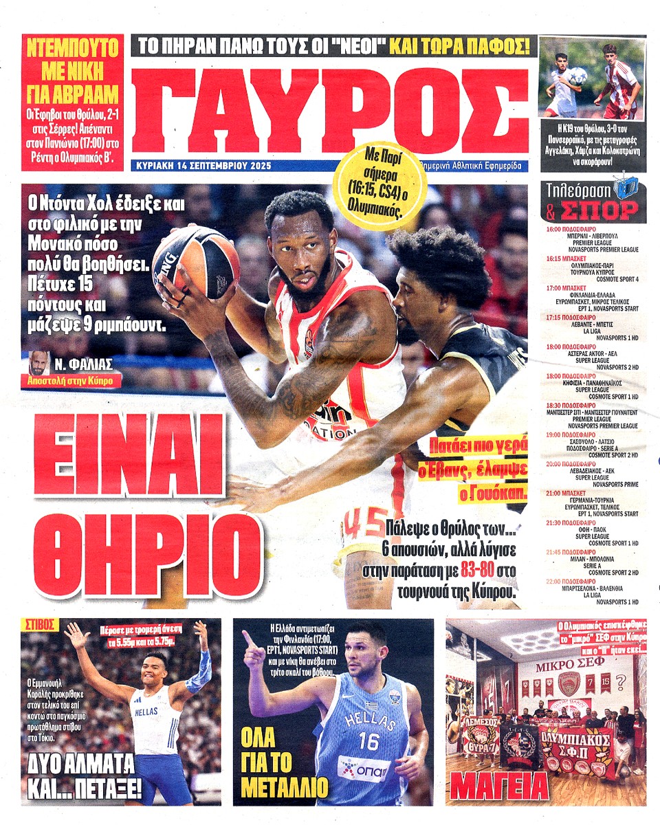 ΠΡΩΤΑΘΛΗΤΗΣ - 14 Σεπτεμβρίου 2025