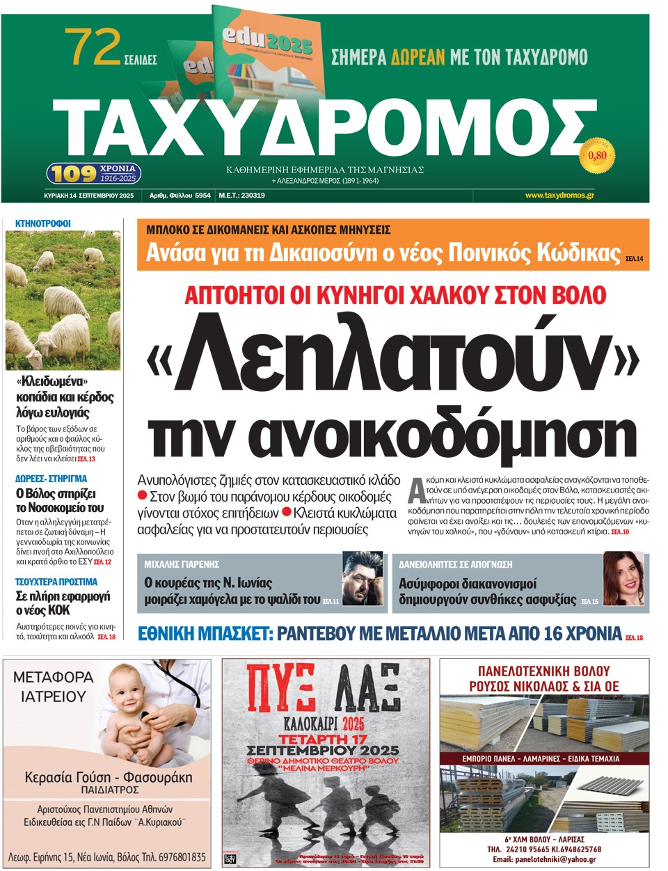 ΤΑΧΥΔΡΟΜΟΣ - 14 Σεπτεμβρίου 2025