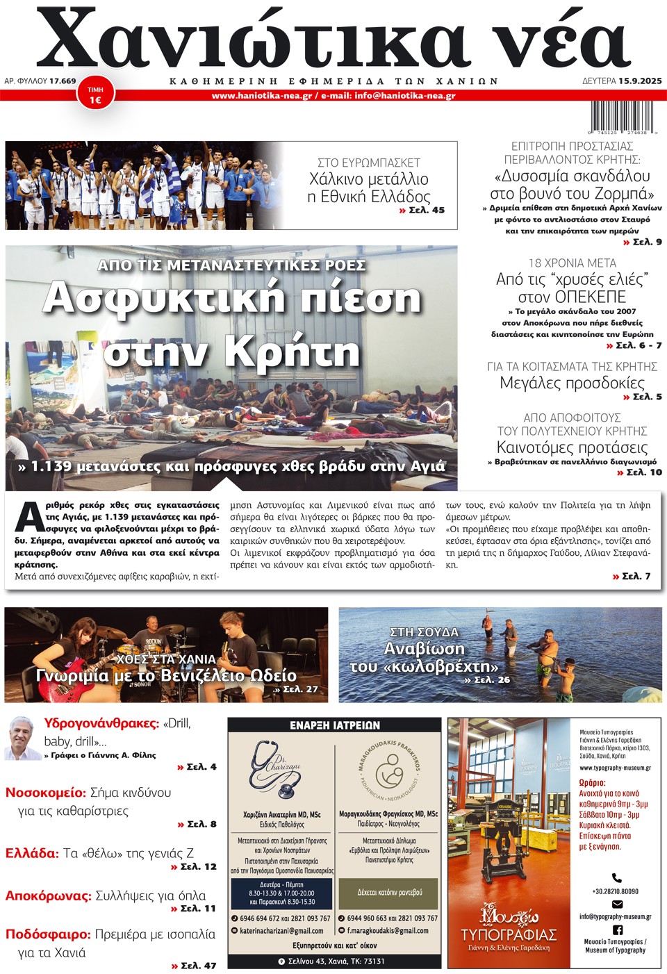 ΧΑΝΙΩΤΙΚΑ ΝΕΑ - 15 Σεπτεμβρίου 2025