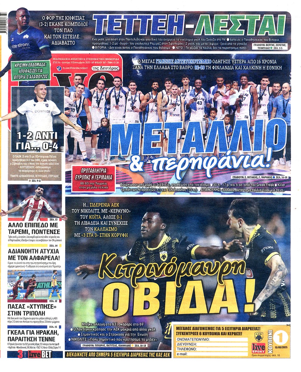LIVE SPORT - 15 Σεπτεμβρίου 2025