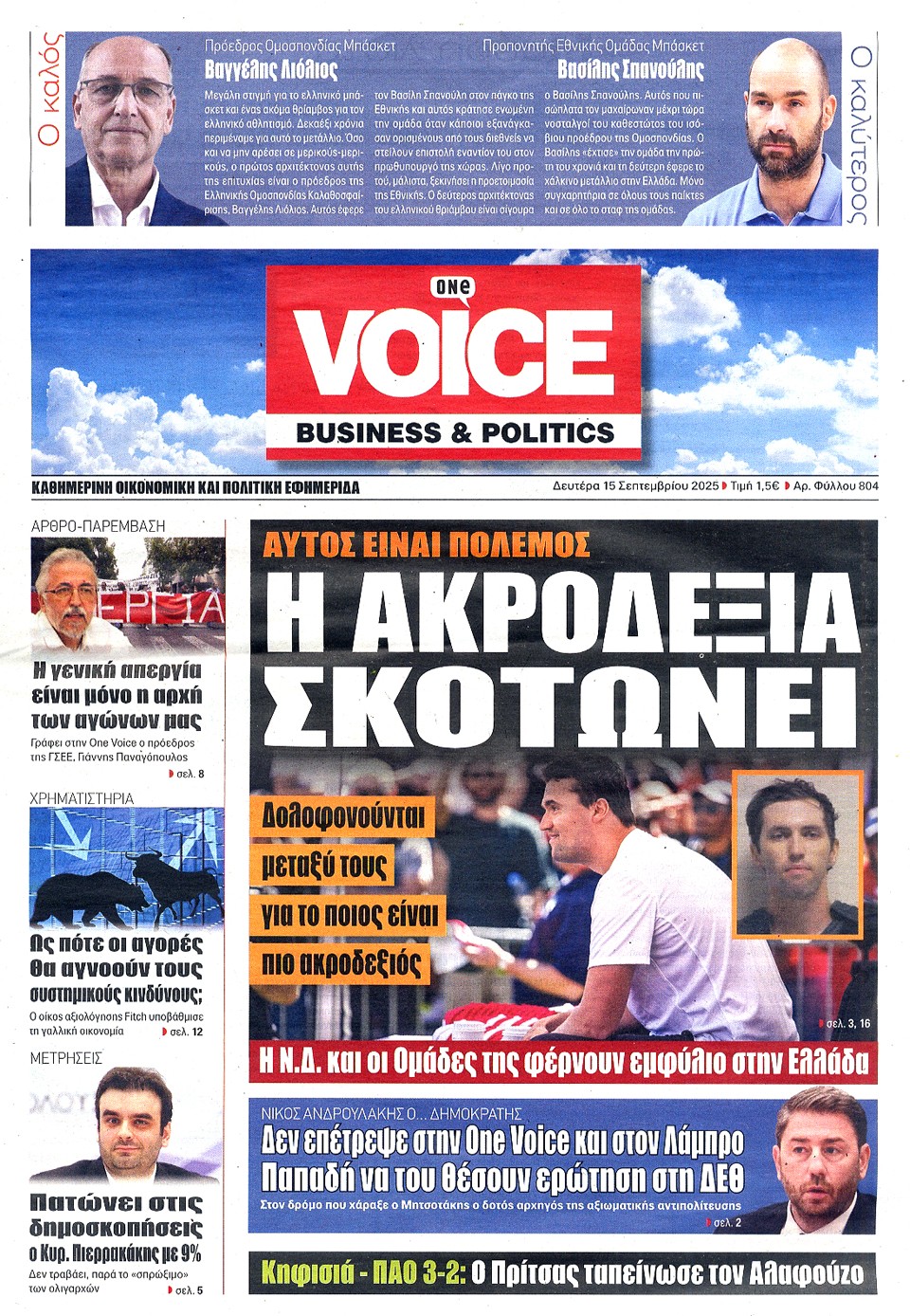ONE VOICE - 15 Σεπτεμβρίου 2025