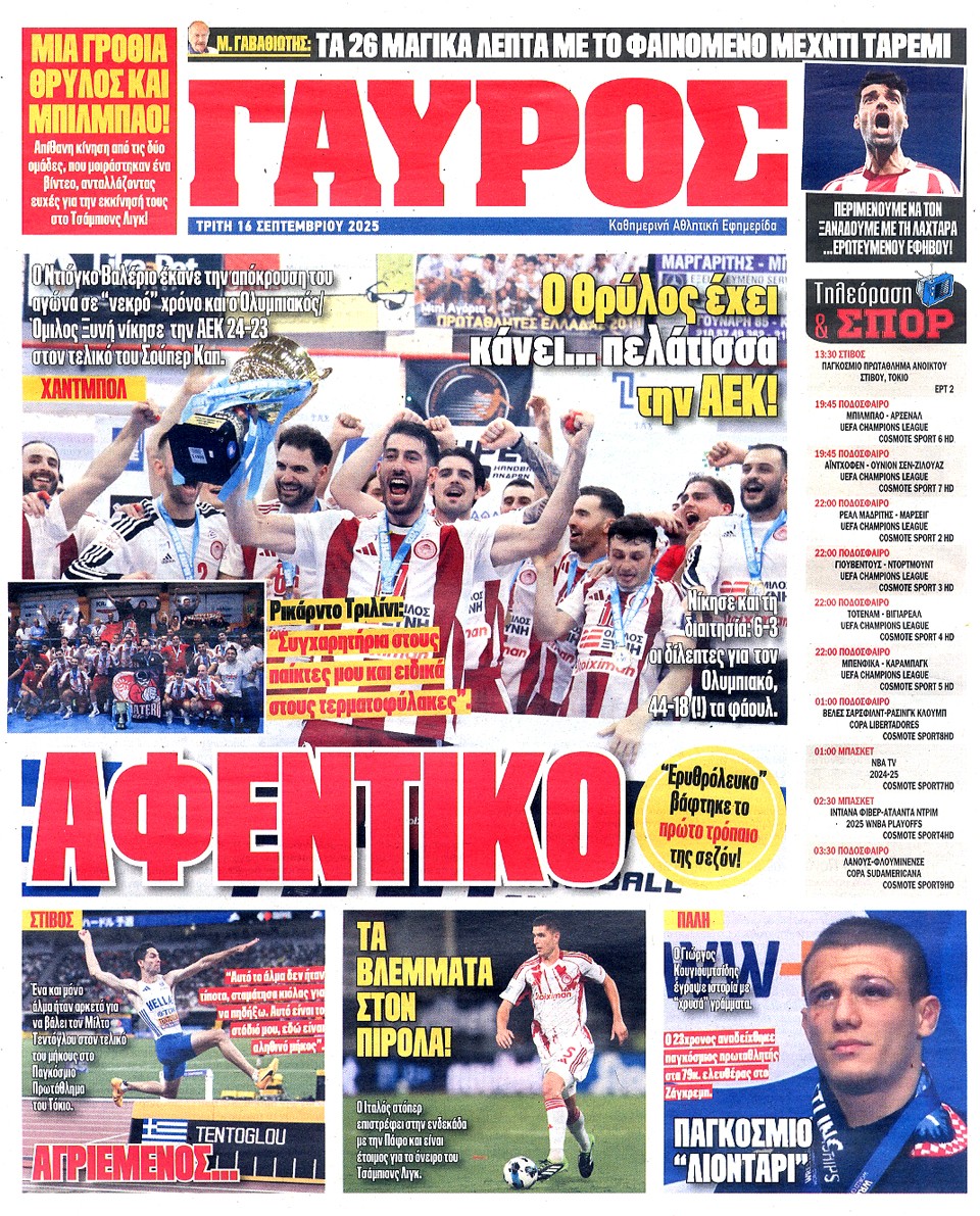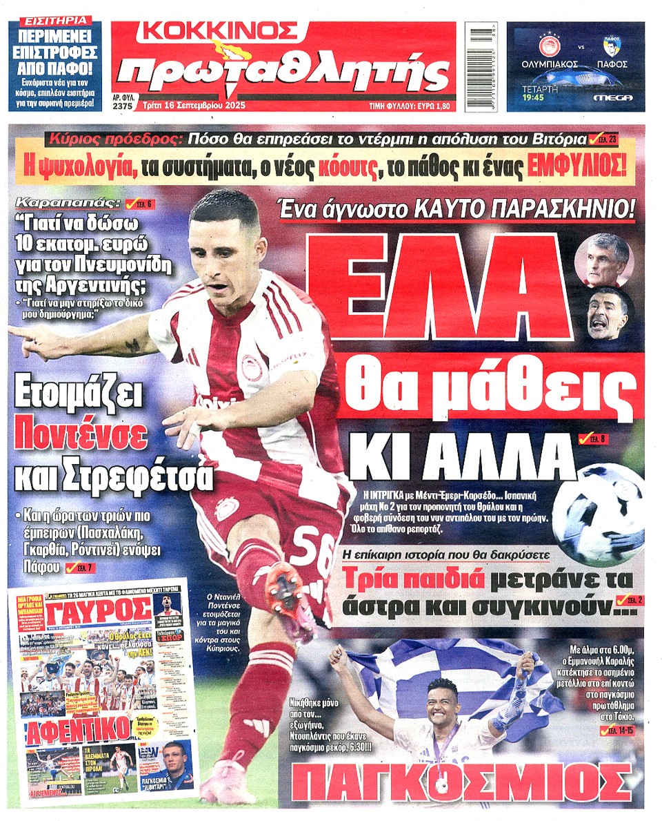 ΠΡΩΤΑΘΛΗΤΗΣ - 16 Σεπτεμβρίου 2025