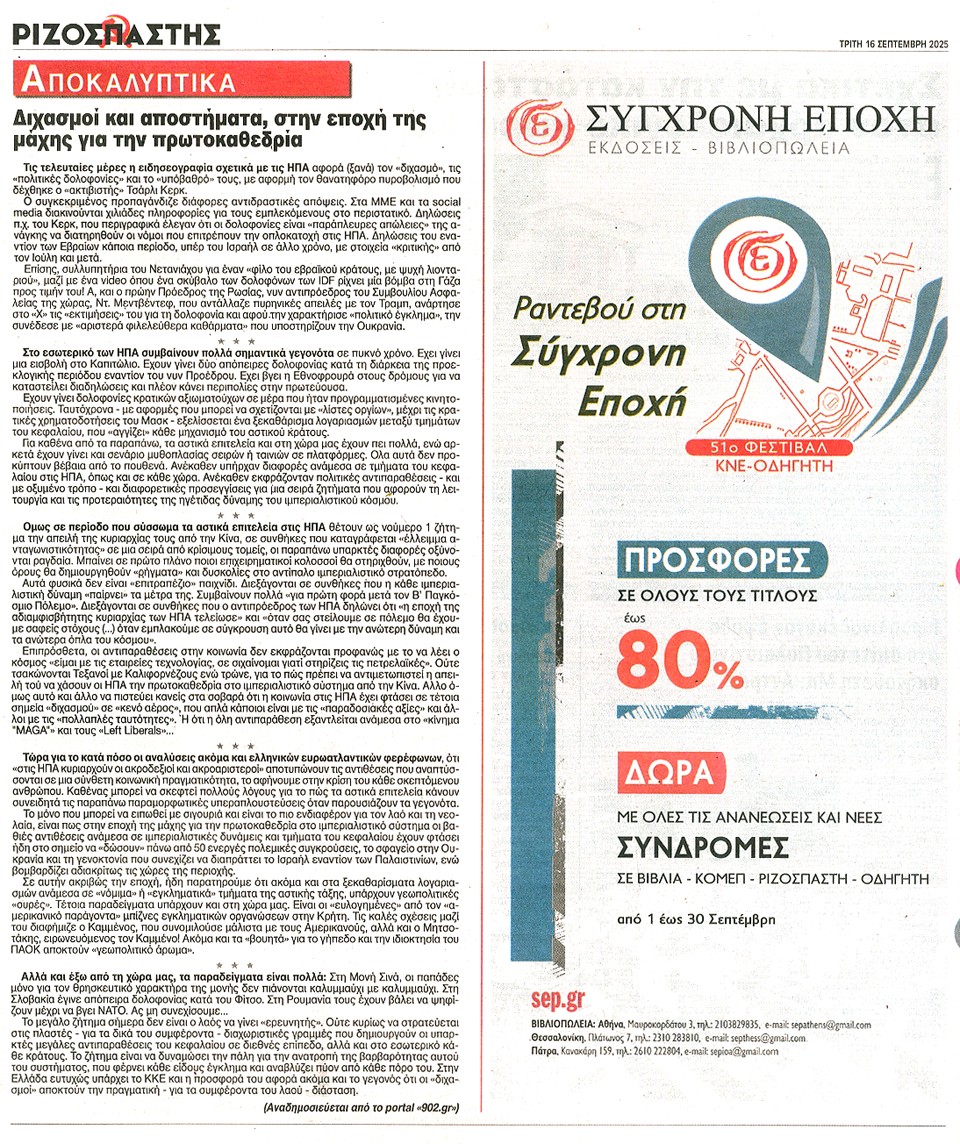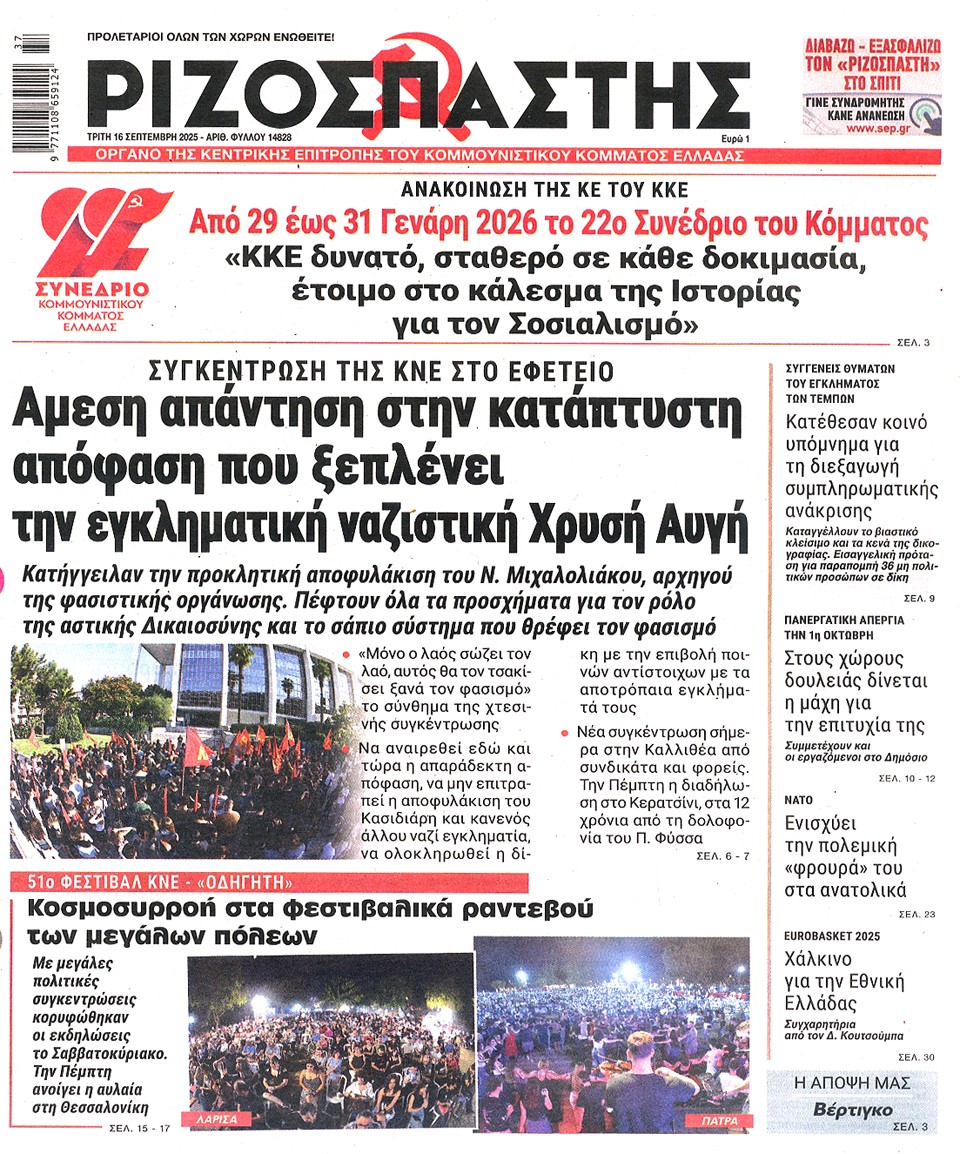 ΡΙΖΟΣΠΑΣΤΗΣ - 16 Σεπτεμβρίου 2025