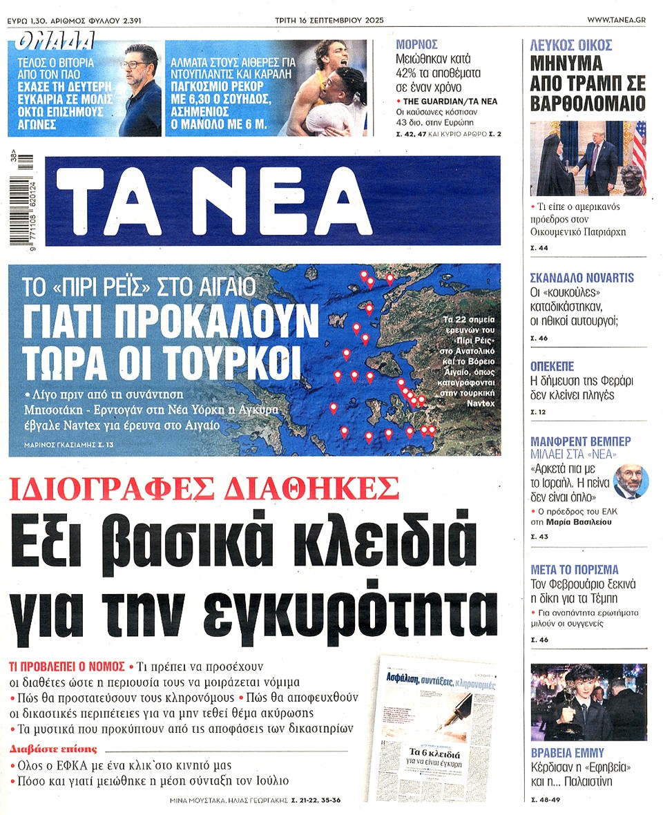 ΤΑ ΝΕΑ - 16 Σεπτεμβρίου 2025